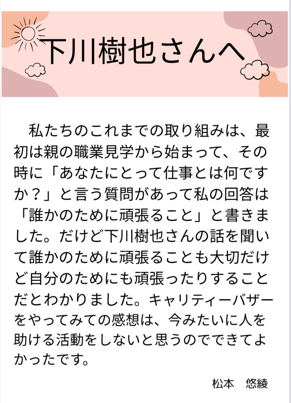 •「支援とは、ただ助けるだけじゃなく、共に生きることだと学びました。」