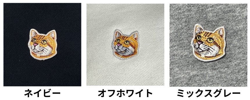 支援者様のお好きな猫をデザインし、色違いワッペンを作成。ロングスリーブとスウェットの2種で作成