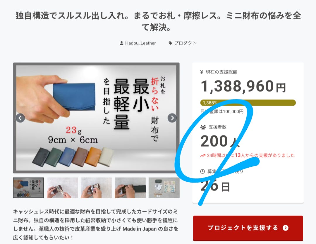 皆さまの温かいご支援のおかげで、極小革財布「Experience」の支援購入者数が200人を突破しました!