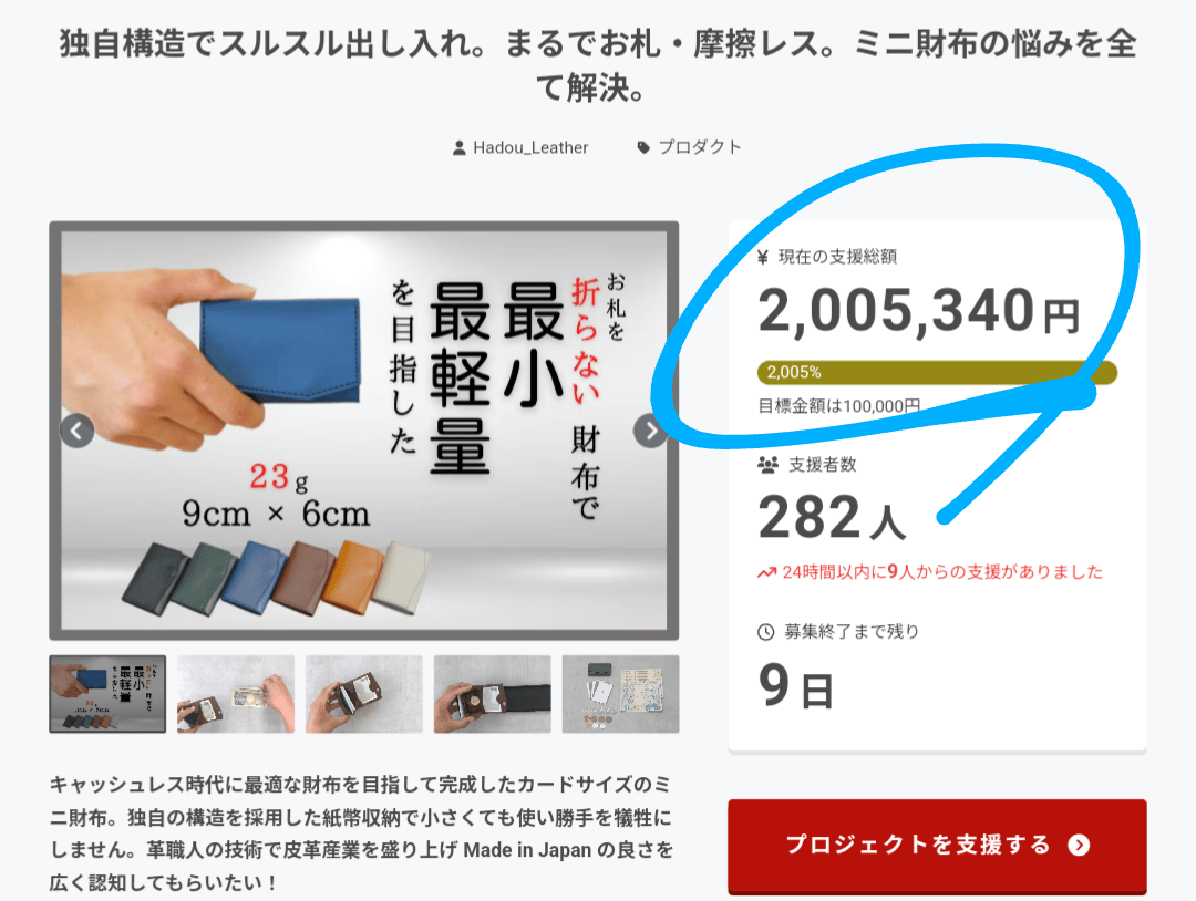 皆さまの温かいご支援のおかげで、極小革財布 「Experience」 の支援総額が 200万円 を突破しました!本当にありがとうございます!