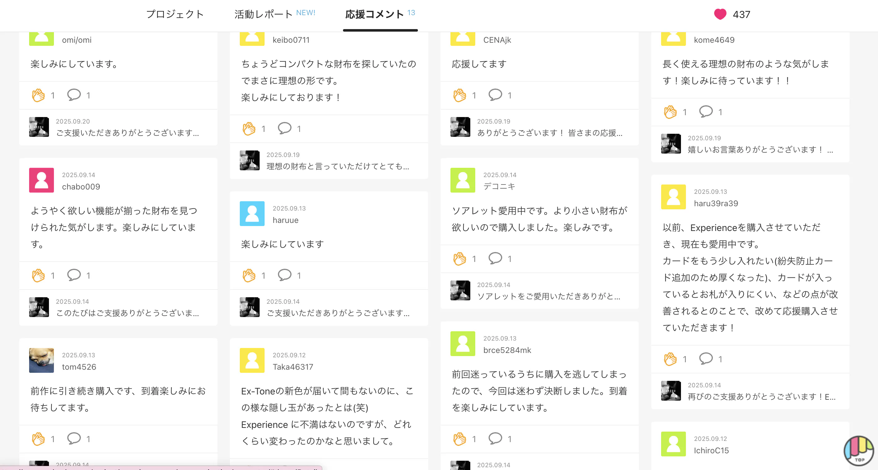 ・「初代の財布から愛用させていただいております。新作楽しみです!」