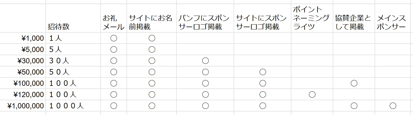 5万円で当日配布するパンフレットと公式サイトにロゴ掲載