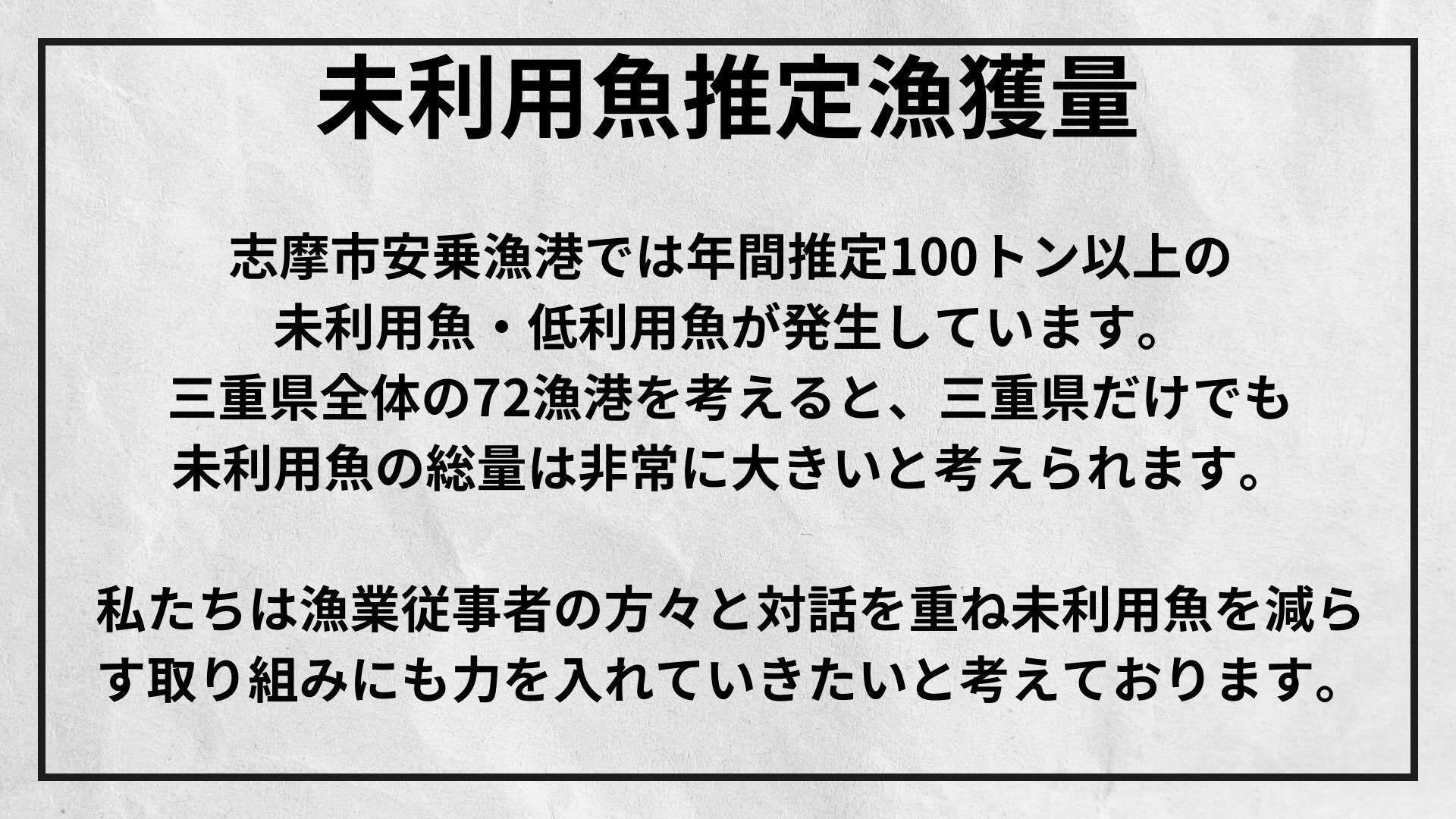 この挑戦が、未利用魚を次世代の資源として活かす未来への第一歩となることを目指し、4年間活動を続けております。