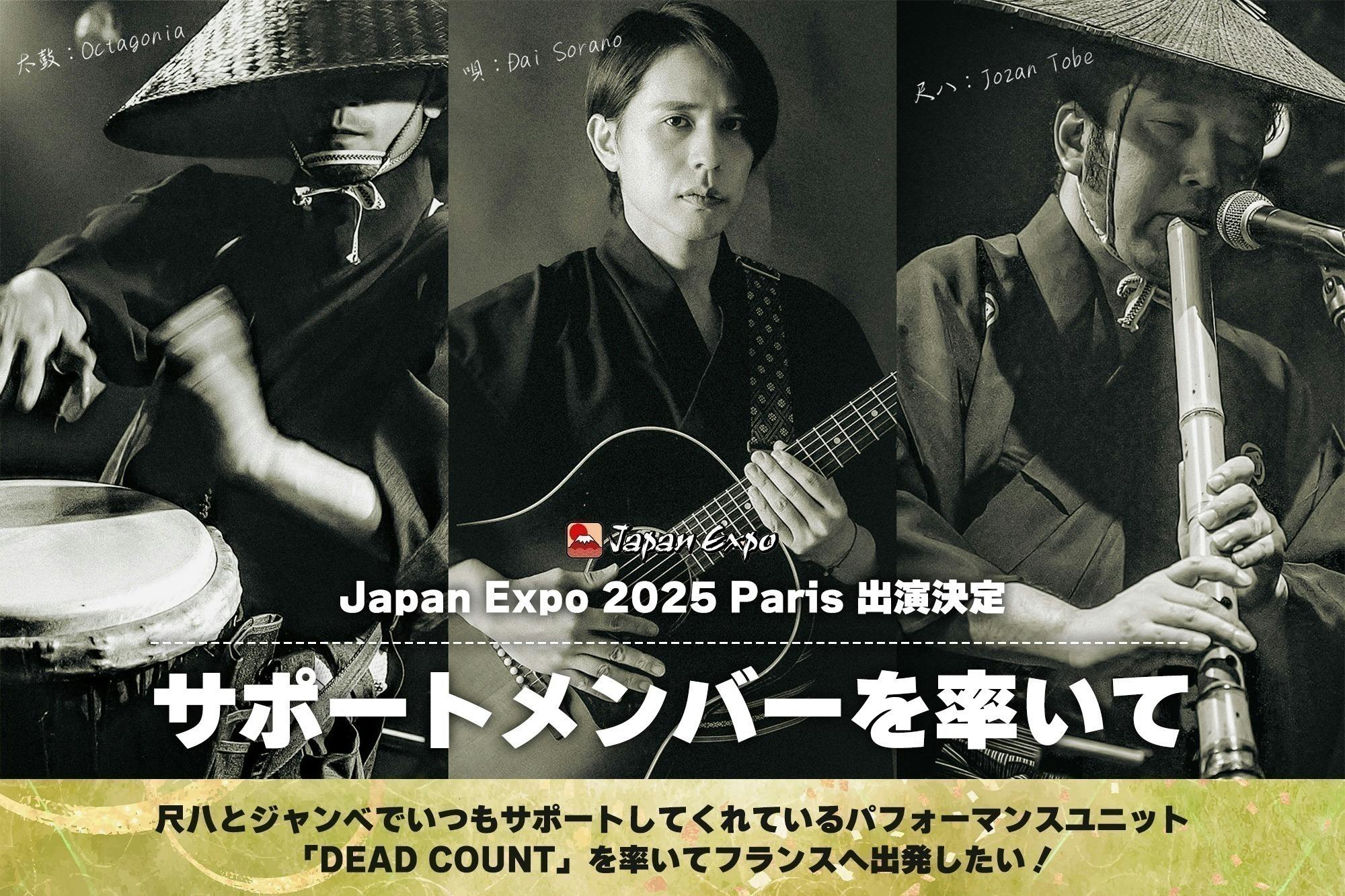 今回、Japan Expo 出演に至った一つの理由として、尺八、ジャンベでサポートしてくれているDEAD COUNTの二人の存在が大きくありました。ジャンベのoctagonia、尺八の戸部定山、そして空野大の3人編成を条件に出演が決定したというものです。しかし、3の渡航費などは全て自費アルバイトを増やしたり、路上ライブなども増やしていますが、なにより、海外出演のチャンスを逃したくなかったので今回クラウドファンディングに挑戦することを決めました!
