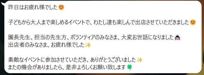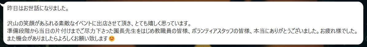 - 「子どもたちの笑顔を支えた」という実感と誇り。