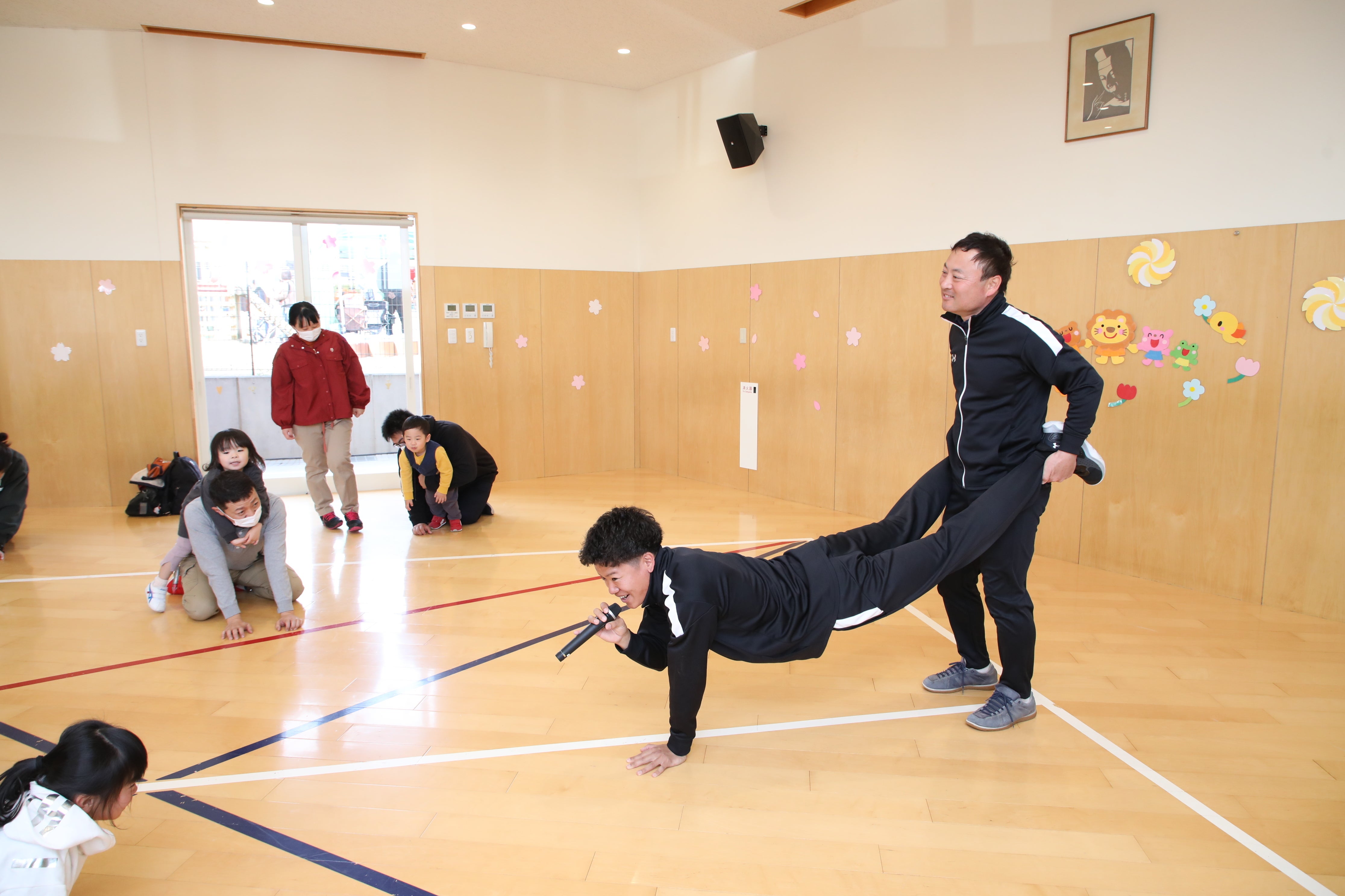 小さいお子様向けの体操ワークショップでは、ふじおか幼稚園で大人気の体操の先生と未就園児教室の担当者が盛り上げてくれました