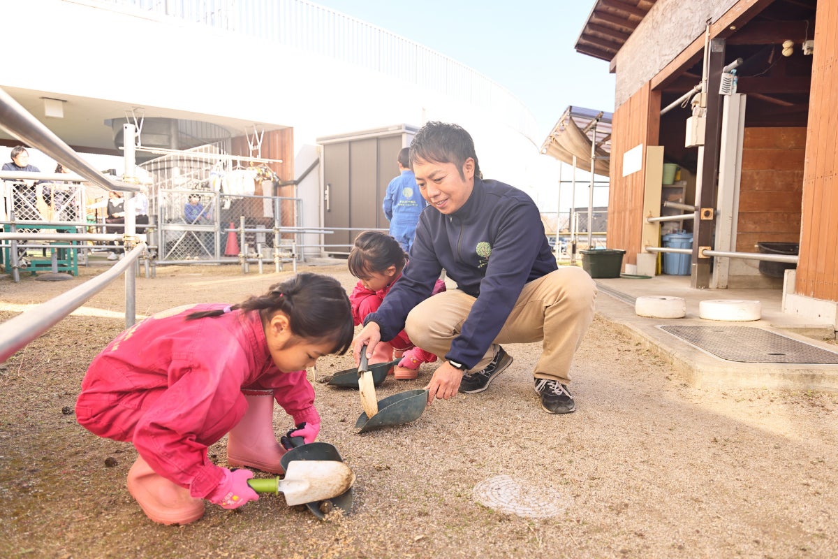 以前クラウドファンでイングで園に迎え入れたミニチュアホース「はなこちゃん」のお世話を園児たちと行う市村弘貴