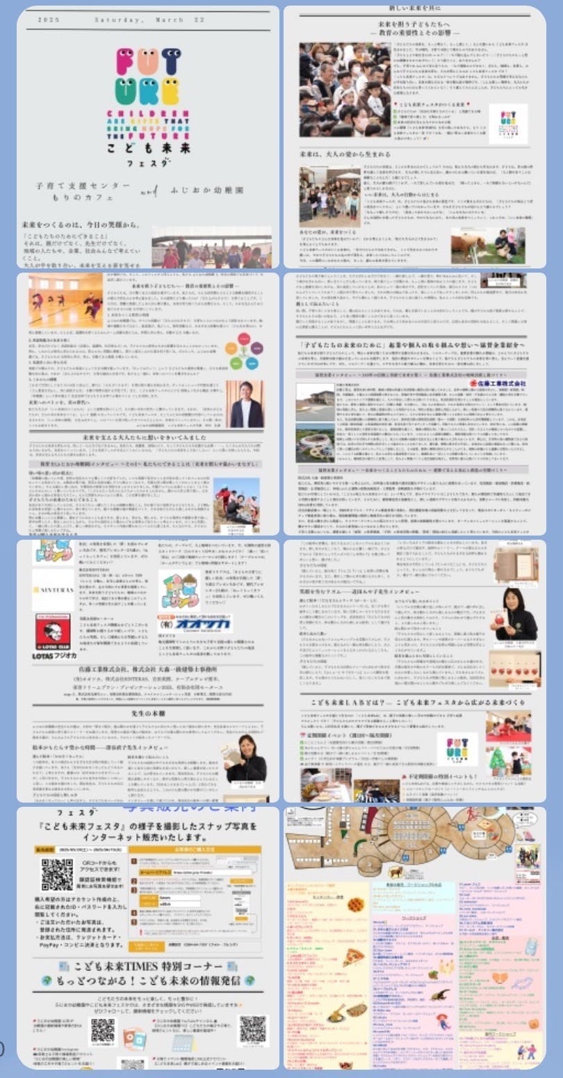 2025/03/19 14:07活動報告:いよいよ今週土曜日!こども未来フェスタ開催皆様の温かいご支援に、改めて心より感謝申し上げます。こども未来フェスタの開催まで、ついに あと数日 となりました!そして、皆様のご協力のもと、こども未来TIMES も完成しました!リターンによって異なりますが、支援者の皆様へのインタビューや協賛社のご紹介 なども掲載させていただいています。当日は 1万枚 を用意し、たくさんのご家族にお届けします!こども未来フェスタの想いが詰まったこの新聞を、ぜひ手に取っていただけたら嬉しいです。いよいよ今週土曜日、ふじおか幼稚園でお待ちしております!ワクワクが詰まった特別な1日を、ぜひご家族で楽しみにいらしてください もっと見る