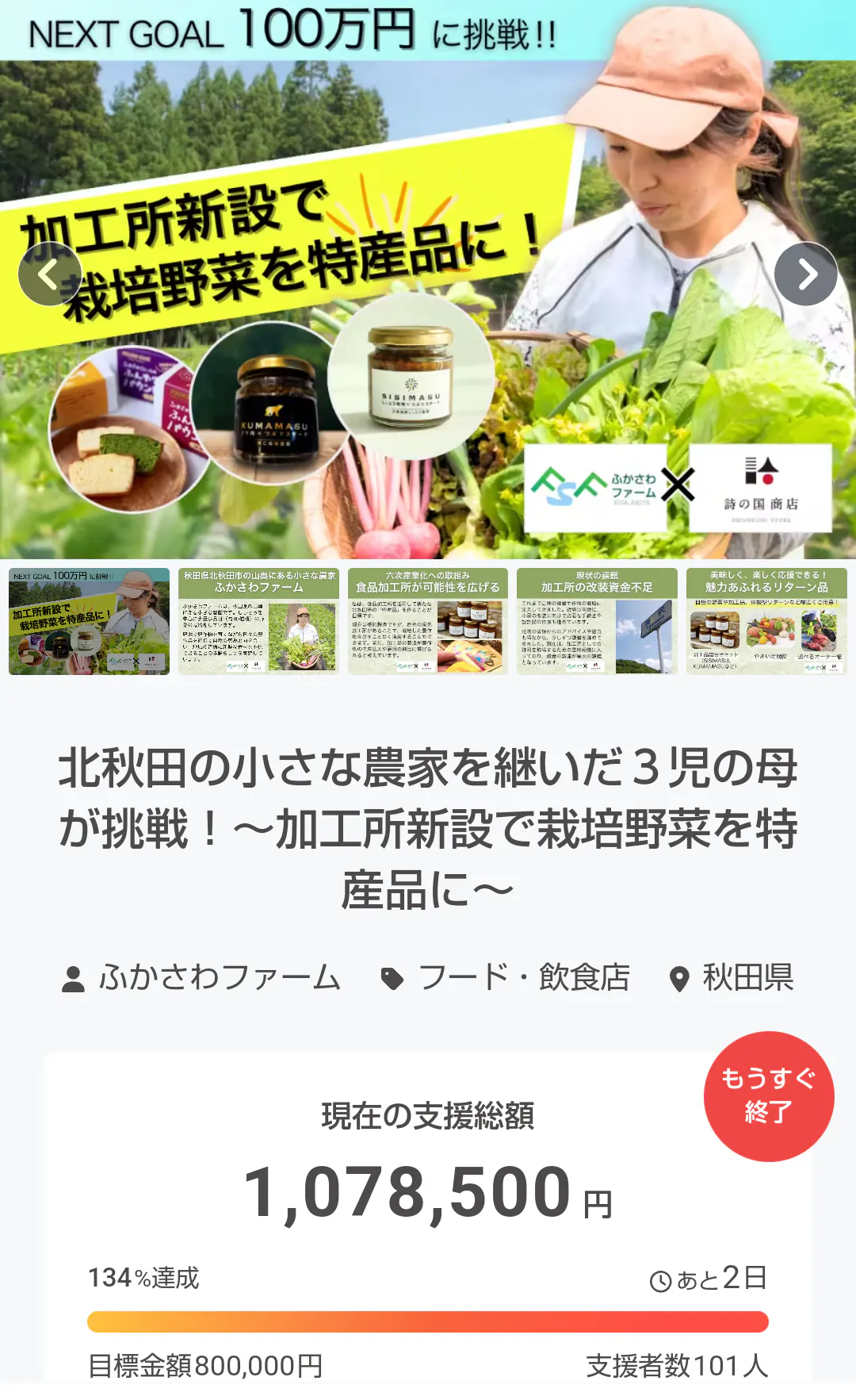 終了直前の本日、ネクストゴールの100万円も達成いたしました!!!