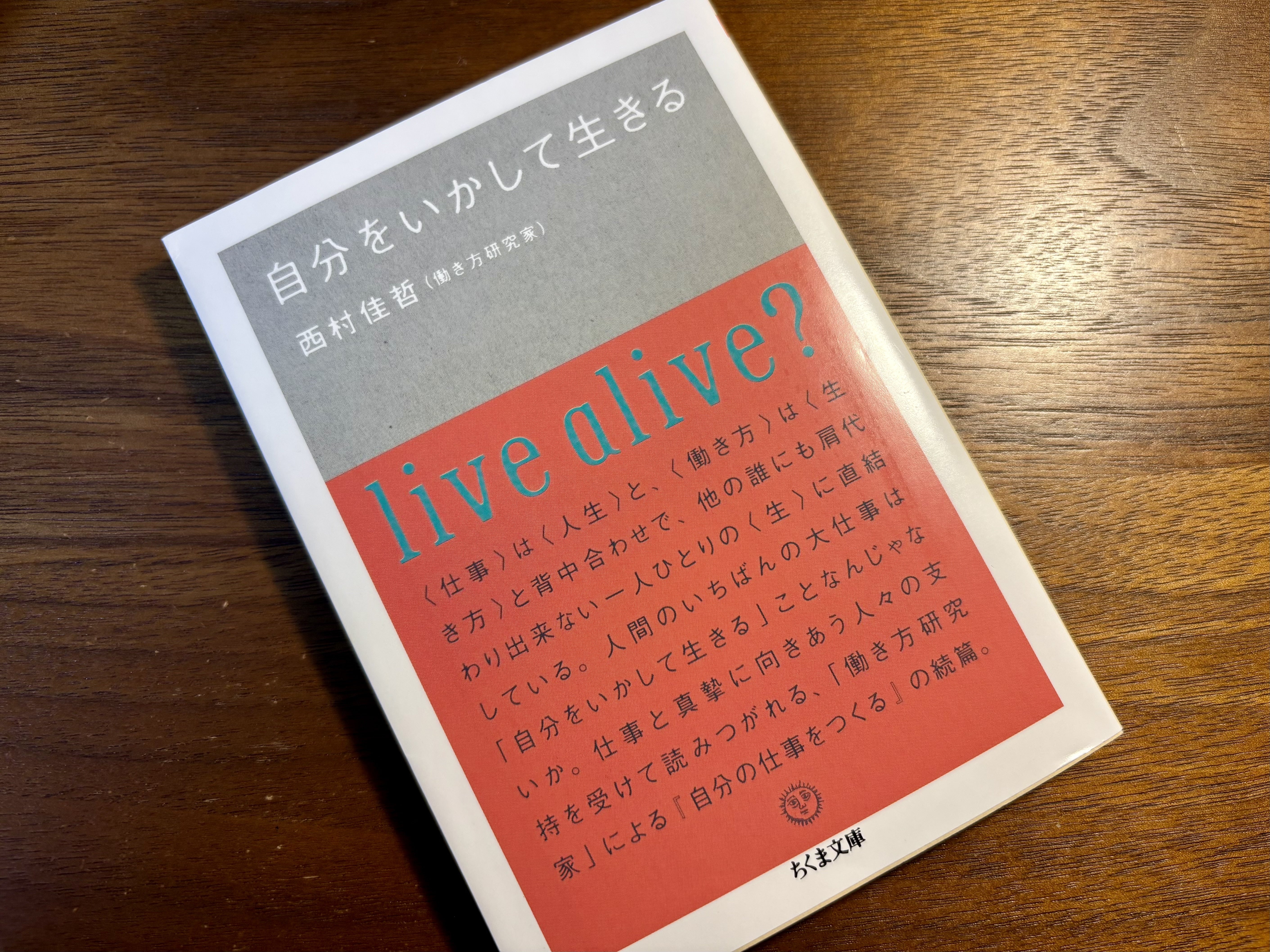 そんな時、従姉妹の結婚式で名古屋を訪れる機会がありました。いつものように旅先で街の本屋を巡り、何気なく立ち寄ったお店で、西村佳哲さんの『自分をいかして生きる』という本に出会いました。タイトルに惹かれ、手に取ったその本の中に、こんな言葉が書かれていました。