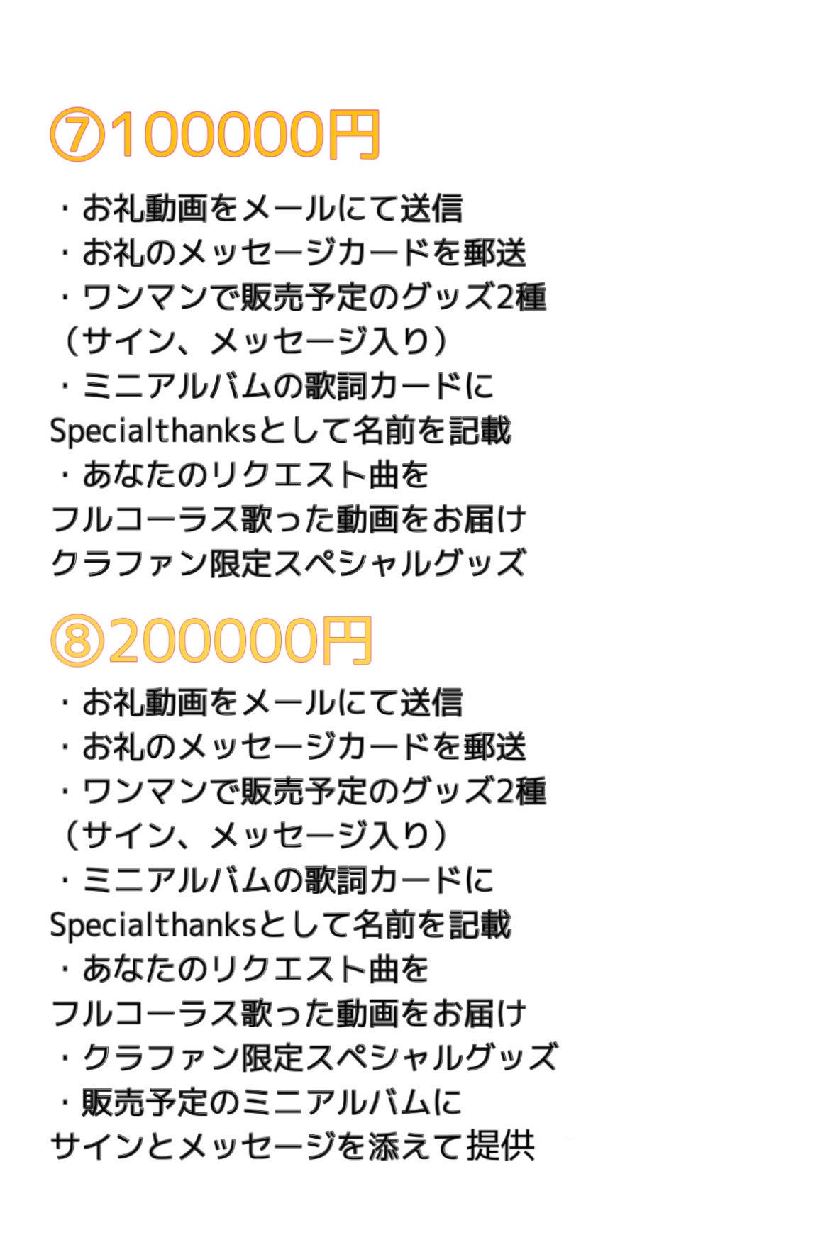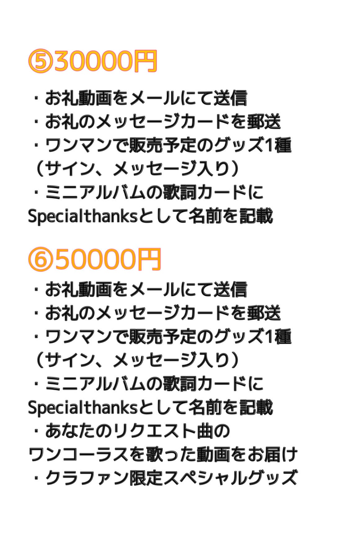 ・⑤〜⑨を選択の方はスペシャルサンクスに記載してほしい名前