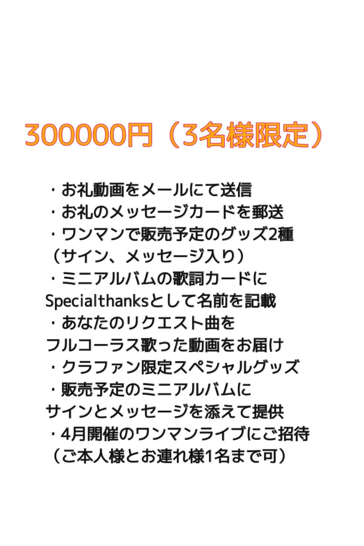 このページをご覧くださった皆様全員に、ワンマンライブに足をお運びいただきたいと思っております。私の歌を、声を、夢と希望を、皆様に真っ直ぐにお届けし、1人でも多くの人に笑顔を届け希望の光となる、そんなワンマンライブにします。
