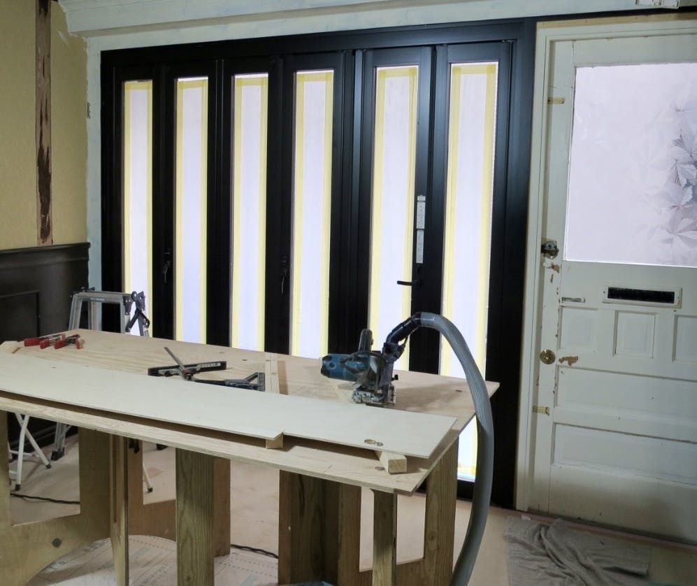 造作が取り壊されて、新しい壁やカウンターなどができて、今回は色塗りが始まるところです。