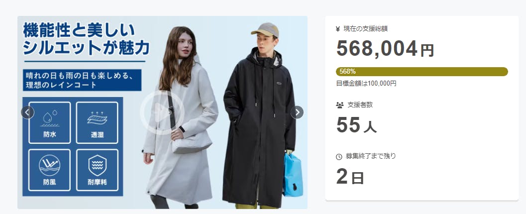 2025/04/28 10:32このたびは、「【男女兼用】おしゃれで機能性抜群な万能レインコート ─ 日常からアウトドアまで!」プロジェクトにたくさんのご支援を賜り、心より御礼申し上げます。プロジェクト終了まで、いよいよ残り2日となりました!ここまで温かい応援をいただき、誠にありがとうございます。皆様のご支援が私たちの大きな励みとなっております。残りわずかとなりますが、最後まで気を引き締めて全力で取り組んでまいりますので、引き続き応援・拡散のほど、何卒よろしくお願い申し上げます。 もっと見る