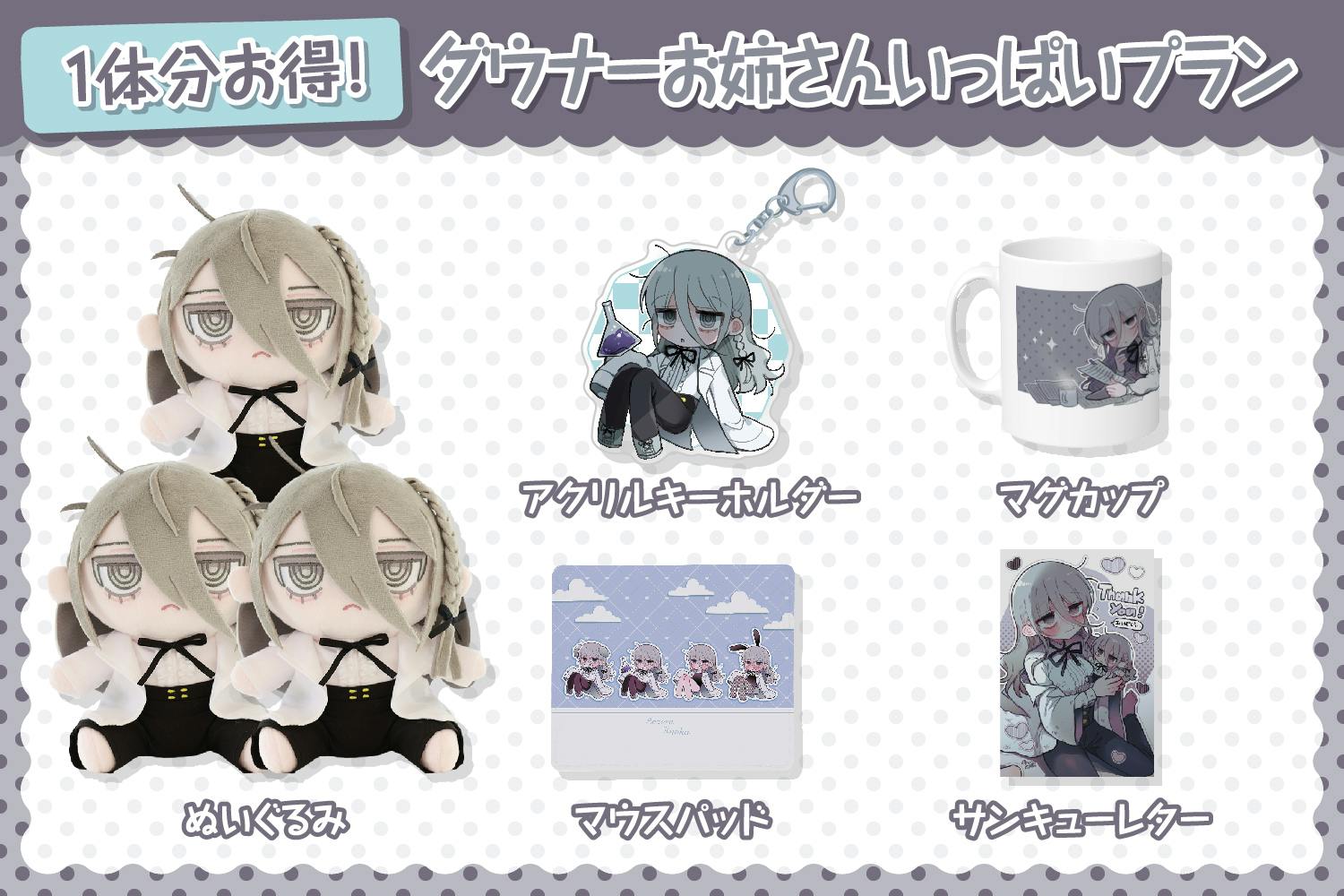 ぬいぐるみと全てのグッズが揃うプランです!