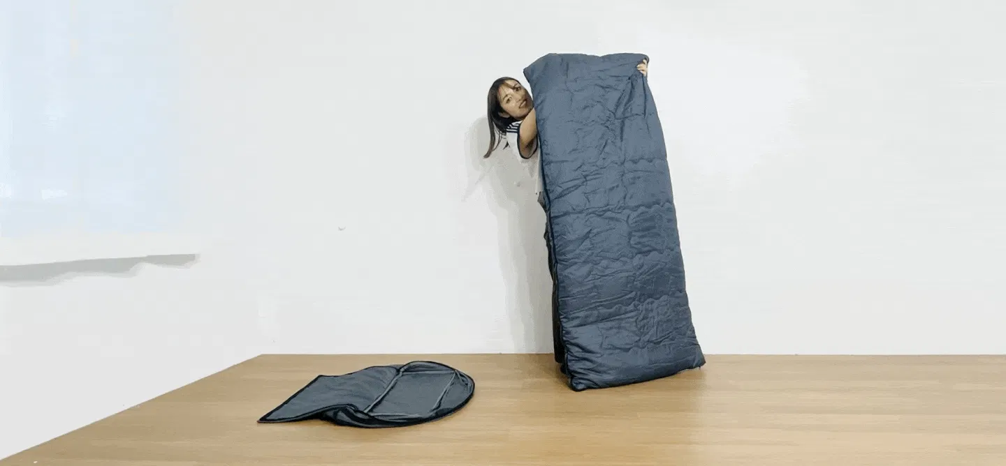 それなら、家にある布団をそのまま活用して、寝袋に入れることができたら、どうだろう?そんなふとしたアイデアから、この寝袋が生まれました。
