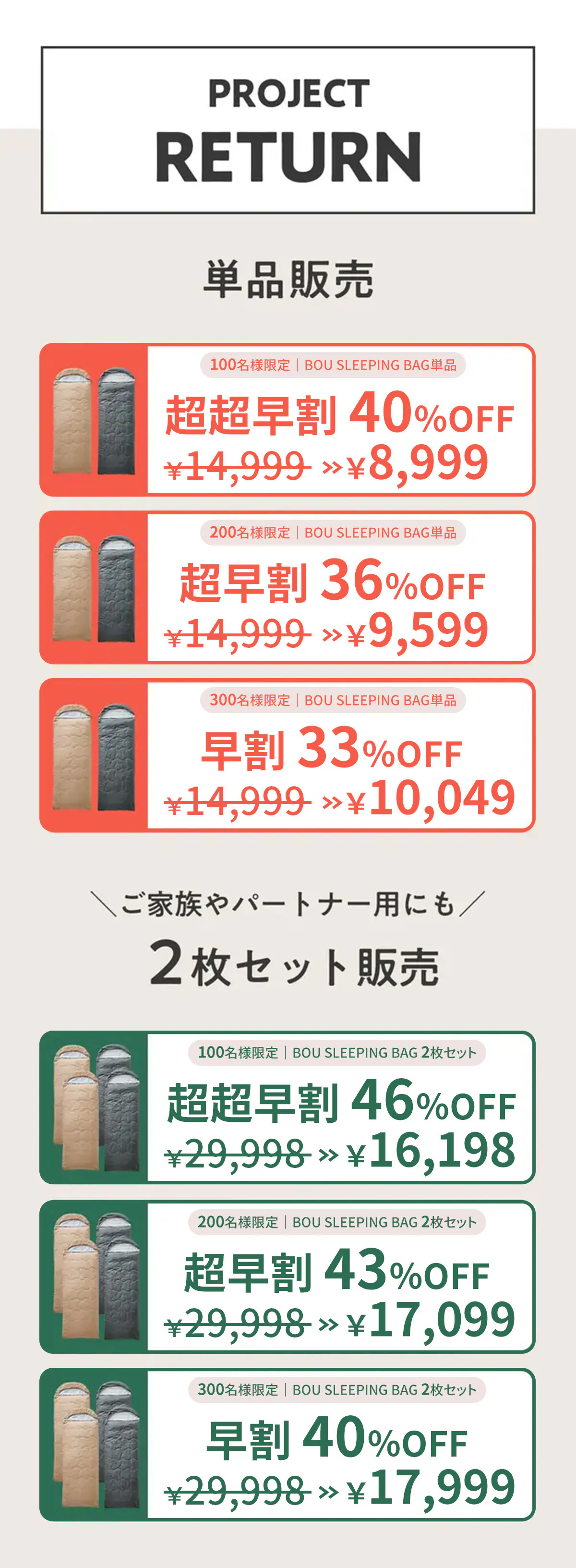 創業後 第一弾の企画として 今回の「BOU SLEEPING BAG」を、心をこめてお届けいたします。