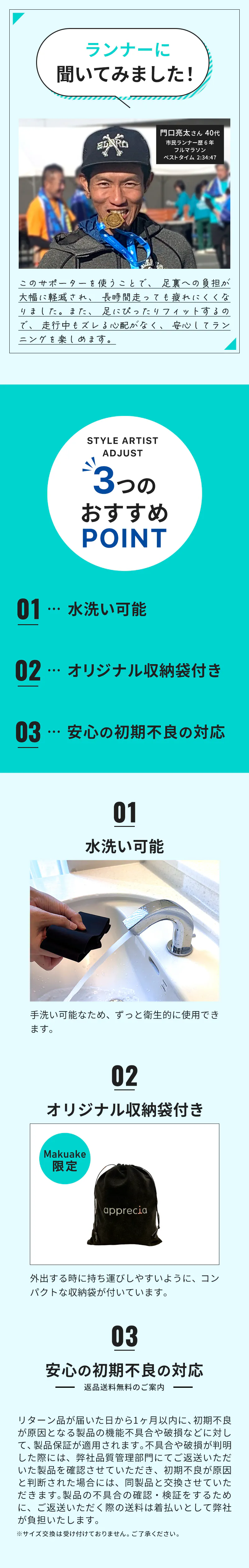 このサポーターを使うことで、足裏への負担が大幅に軽減され、長時間走っても疲れにくくなりました。また、足にピッタリフィットするので、走行中もズレる心配がなく、安心してランニングを楽しめます。