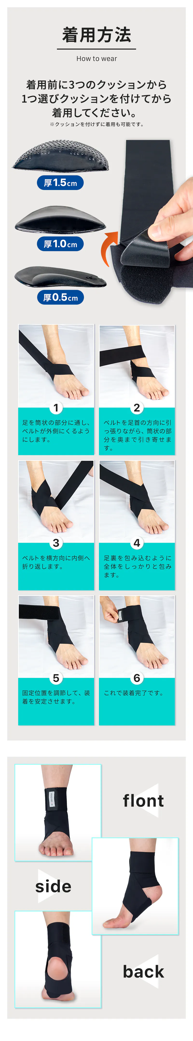 足首に固定するタイプのサポーターでズレにくく足先が痛まない!安定した走行をサポート!
