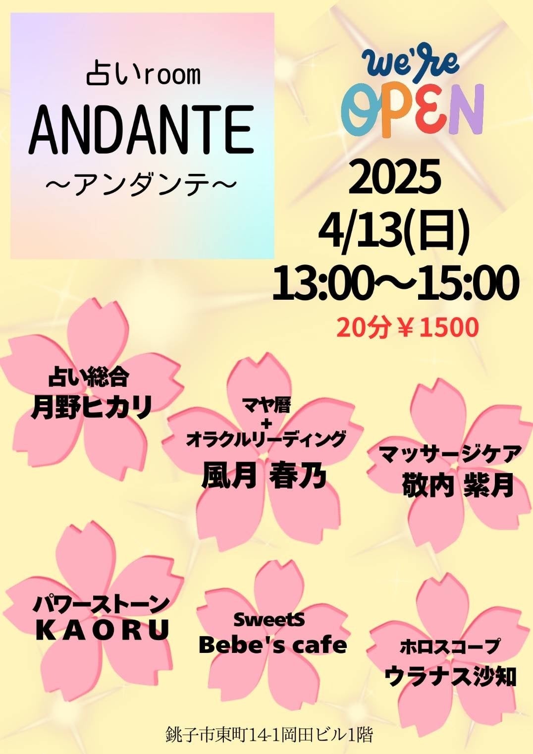 2025年3〜4月 占いシェアroomアンダンテ オープン