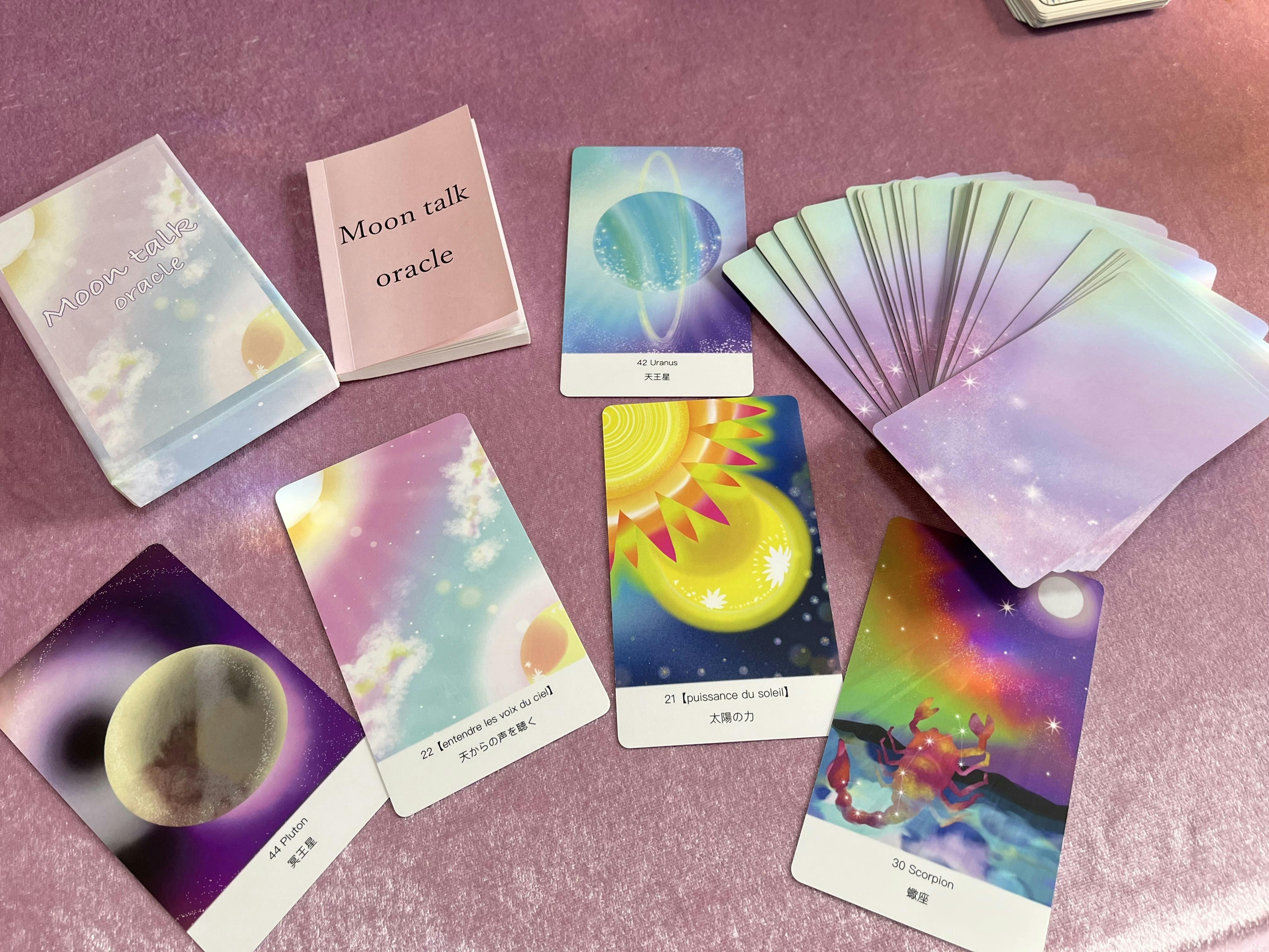 月野ヒカリ オリジナルオラクルカードを新たにリターン追加になりました!景色〜12星座〜10天体の3部作44枚のカードで構成されています。カードの絵は、タロットスクールの生徒さんが描き、カードの解説は月野ヒカリが設定しました。前向きな文言が人気のオラクルカード。ぜひお選びいただきたいと思います!