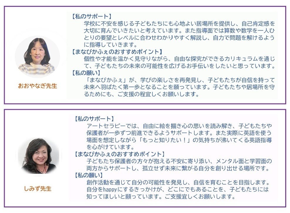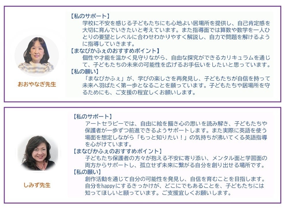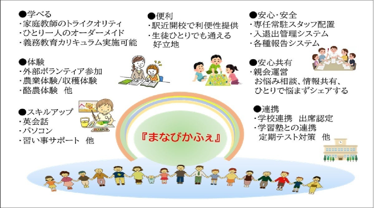 これにより、増加する不登校児童・生徒を受け入れ、ご家庭・学校・地域と連携し、一人ひとりに寄り添った支援を行い、社会的に自立する環境を醸成すると共に、地域に第3の居場所も解放して参ります。
