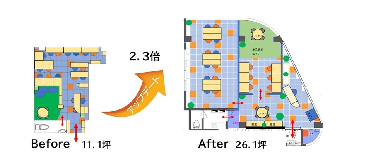 約2.3倍の広さを確保し、豊かなスペースで学習支援と安らぎや様々な体験を提供します。