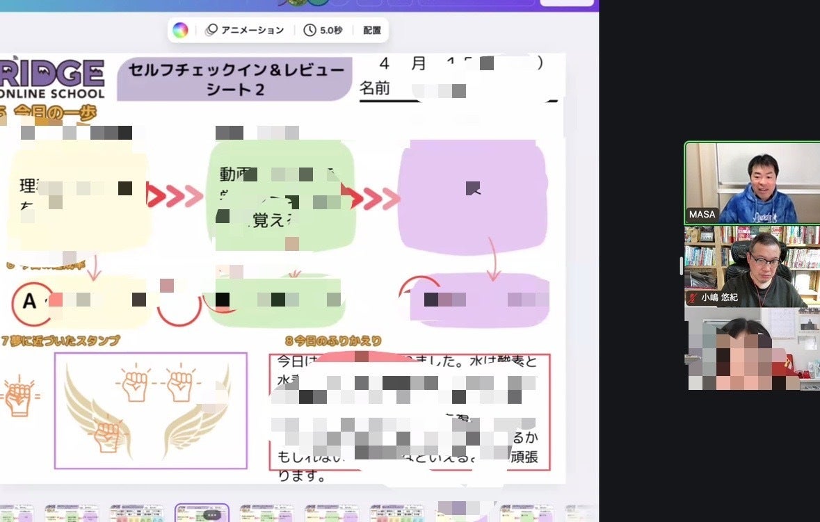RIDGE ONLINE SCHOOLを応援いただいている皆様!RIDGE ONLINE SCHOOL 開校から1ヶ月が過ぎました!毎週のように入校希望のお問合せをいただいております。現在13名の生徒さんが通われています!皆様の応援が不登校の子どもたちの明るい未来の礎になっています。教材費無償化はどのご家庭の保護者の方にも喜ばれております。またメタバース空間も開発業者との契約を本日締結し、いよいよ開発に着手しました!不登校の子供達のより良い居場所にメタバース空間を用意することができます! 本当にありがとうございます! 写真は午前中のセルフグロースタイムの様子です。これが本当に大好評ですね! 多くの子供達は「自己認知」を高め、お家から夢に向かって日々を過ごしています! リターンのご用意もいよいよ整ってきております。今しばらくお待ちください。