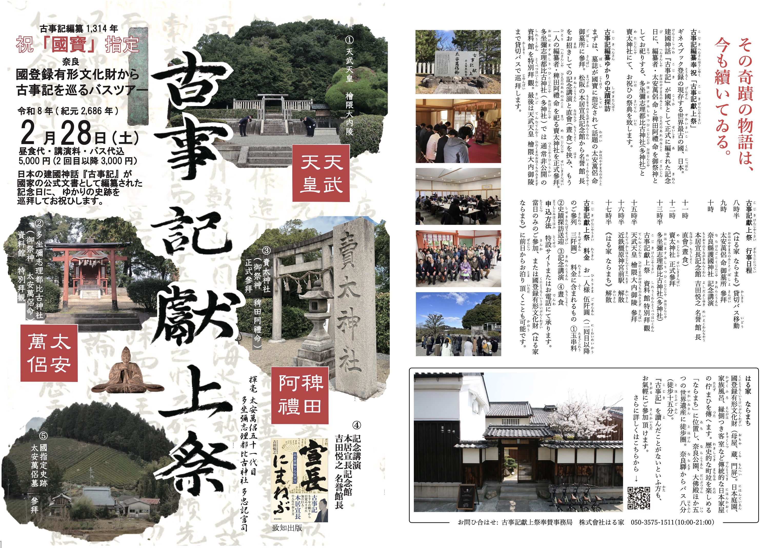 (お問ひ合はせ先:古事記献上祭事務局 株式會社はる家:050-3575-1511)