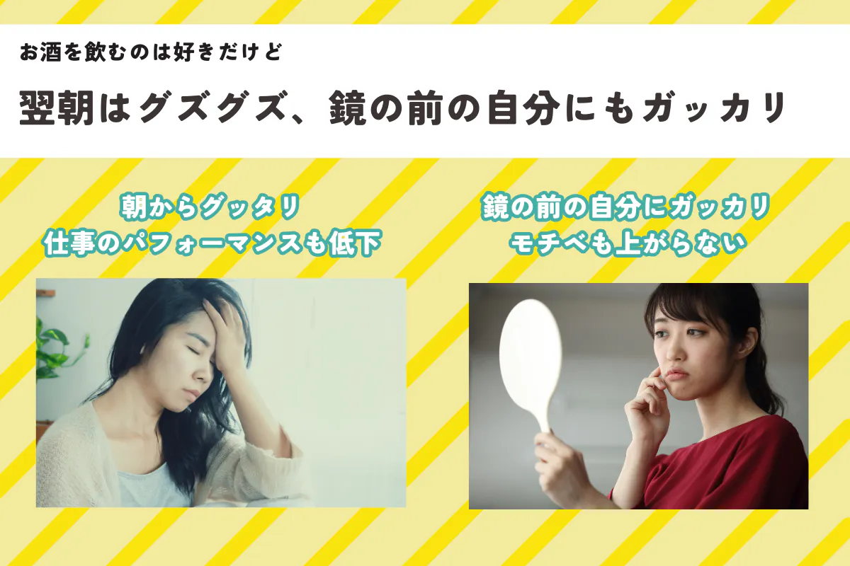 「お酒は好きだけど、翌日のグズグズ、鏡の前の自分の姿にガッカリ・・・」そう感じることはありませんか?