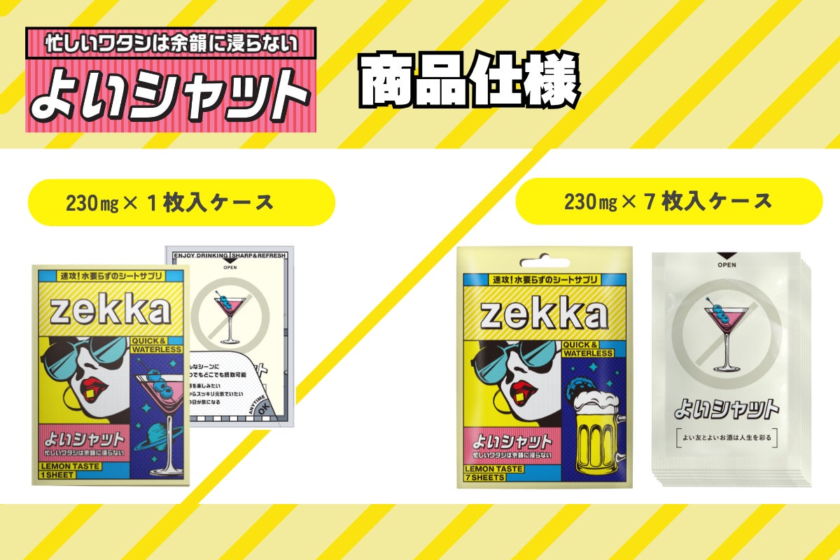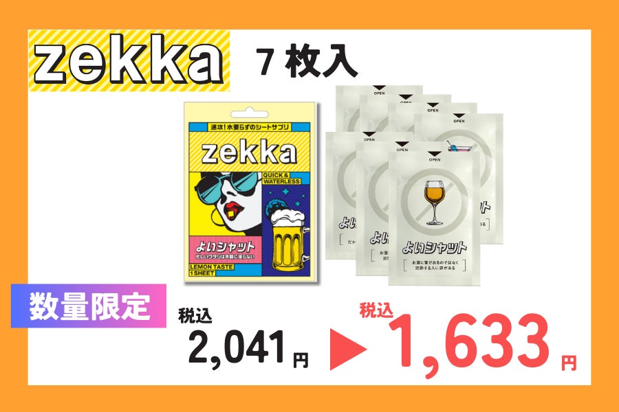 私たちは、日々感じる日常の悩みを「今」解決すべく、次世代シート型サプリメント『zekka(ゼッカ)』を開発しました。今、必要な悩みに対して最適なアプローチを行う新たなアイテムとして、「飲む」から「溶ける」サプリメントへ。是非、違いを体感してください。