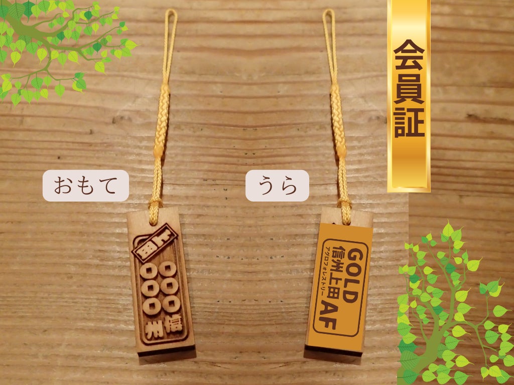 真田家の家紋である六文銭をモチーフにしたストラップタイプの会員証です。