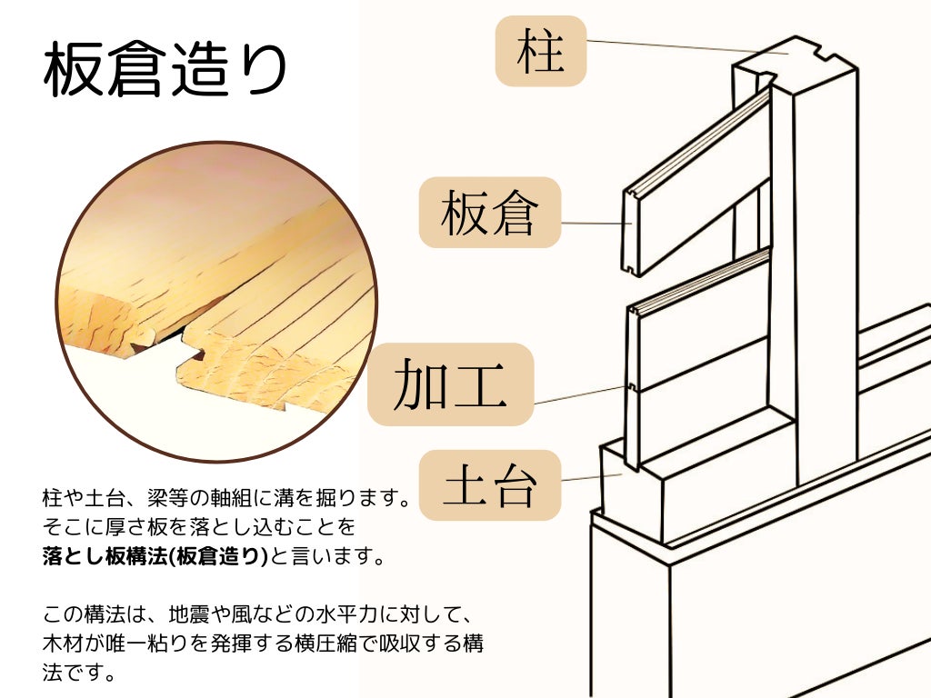 「板倉造り」とは、木材を活かした日本の伝統工法。