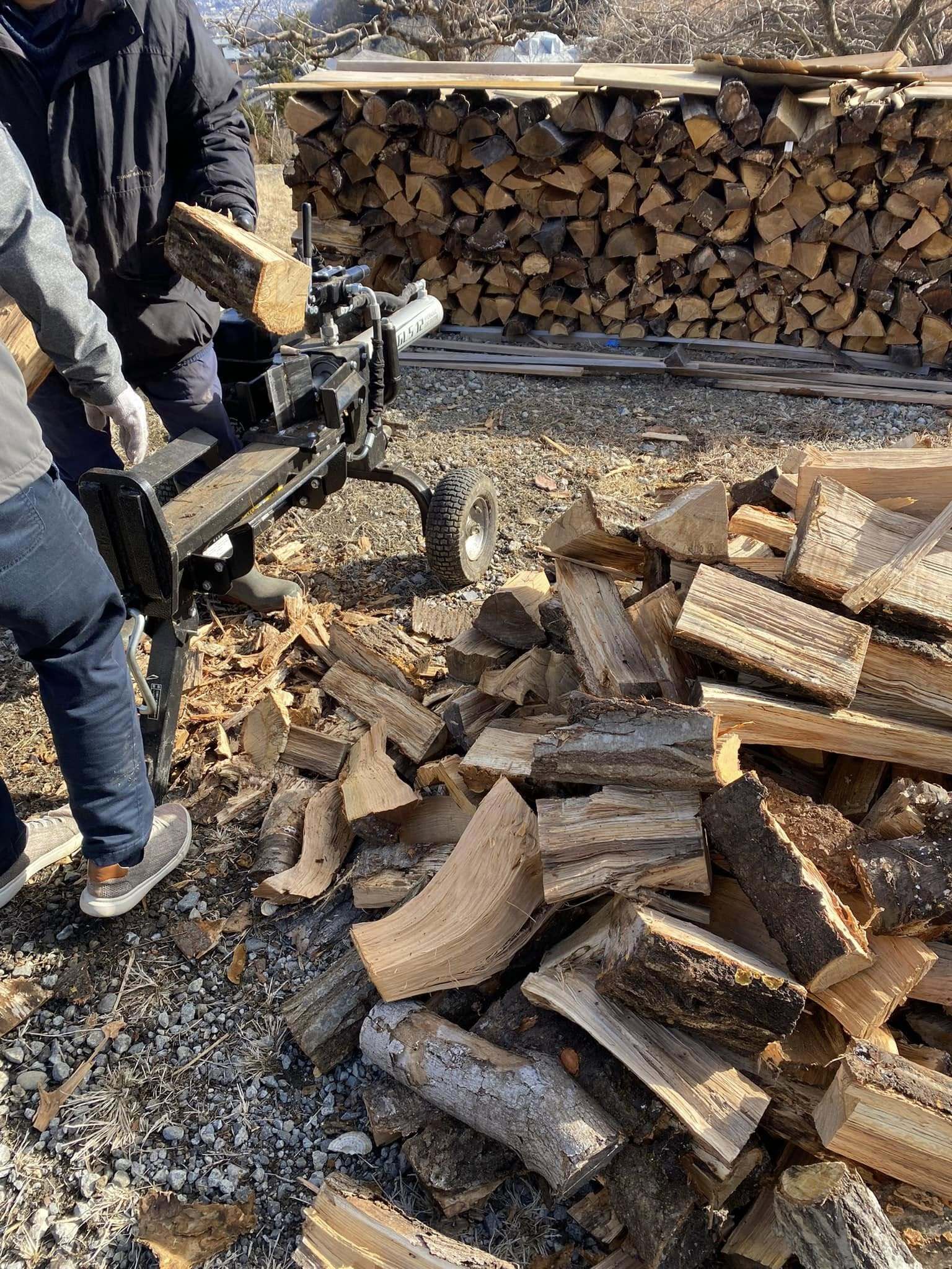 ・里山体験フィールド(別所温泉駅から徒歩20分、車で5分)まで来ていただき、里山林から伐採された丸太をご用意しますので参加者は、こちらでご用意させていただく斧や薪割り機で丸太を割って薪をつくる体験、薪を使った焚き火体験をしていただきます。ご自身でつくられた薪はお持ち帰りできます。
