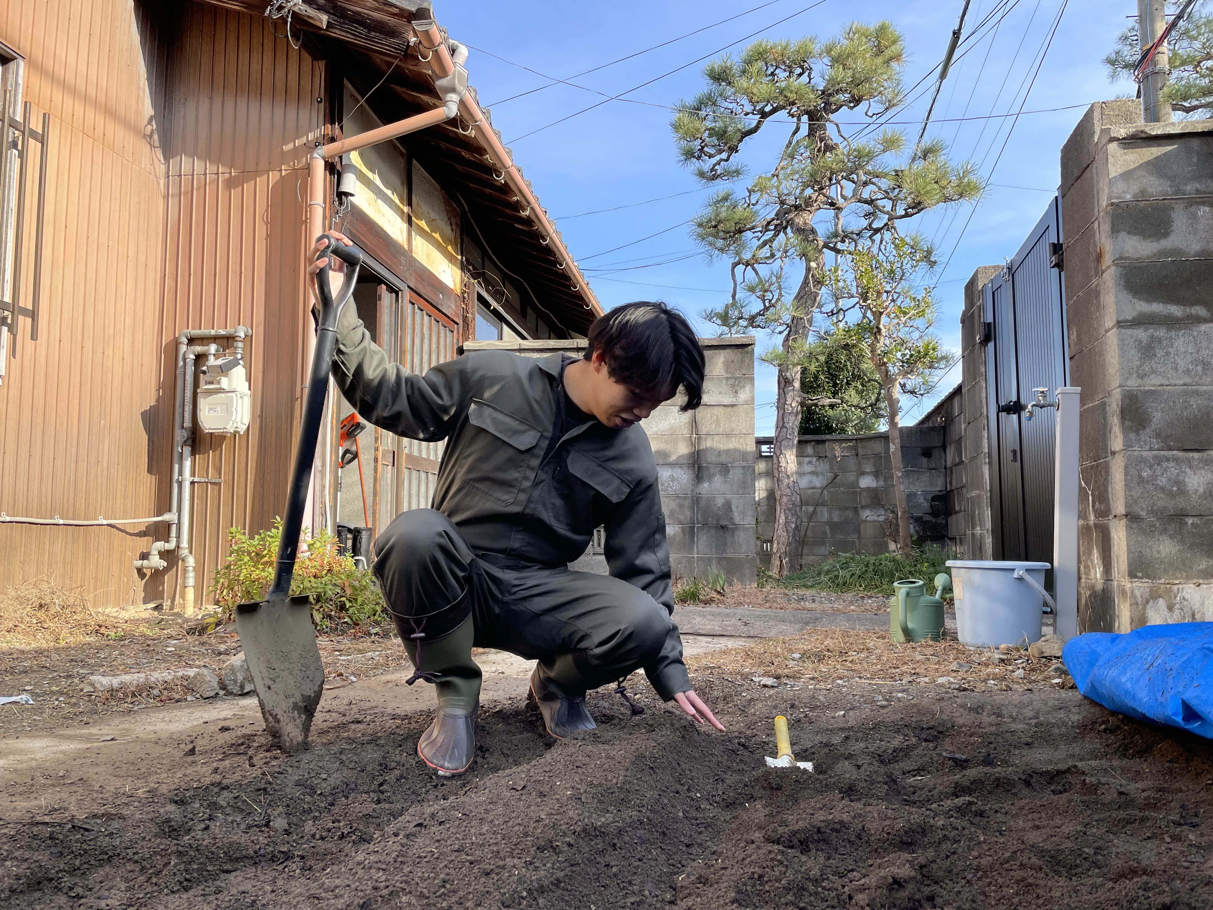 現在、プロジェクトの第一段階として、空き家の庭を畑に改修する作業、ホウレンソウの試験栽培を進めています。