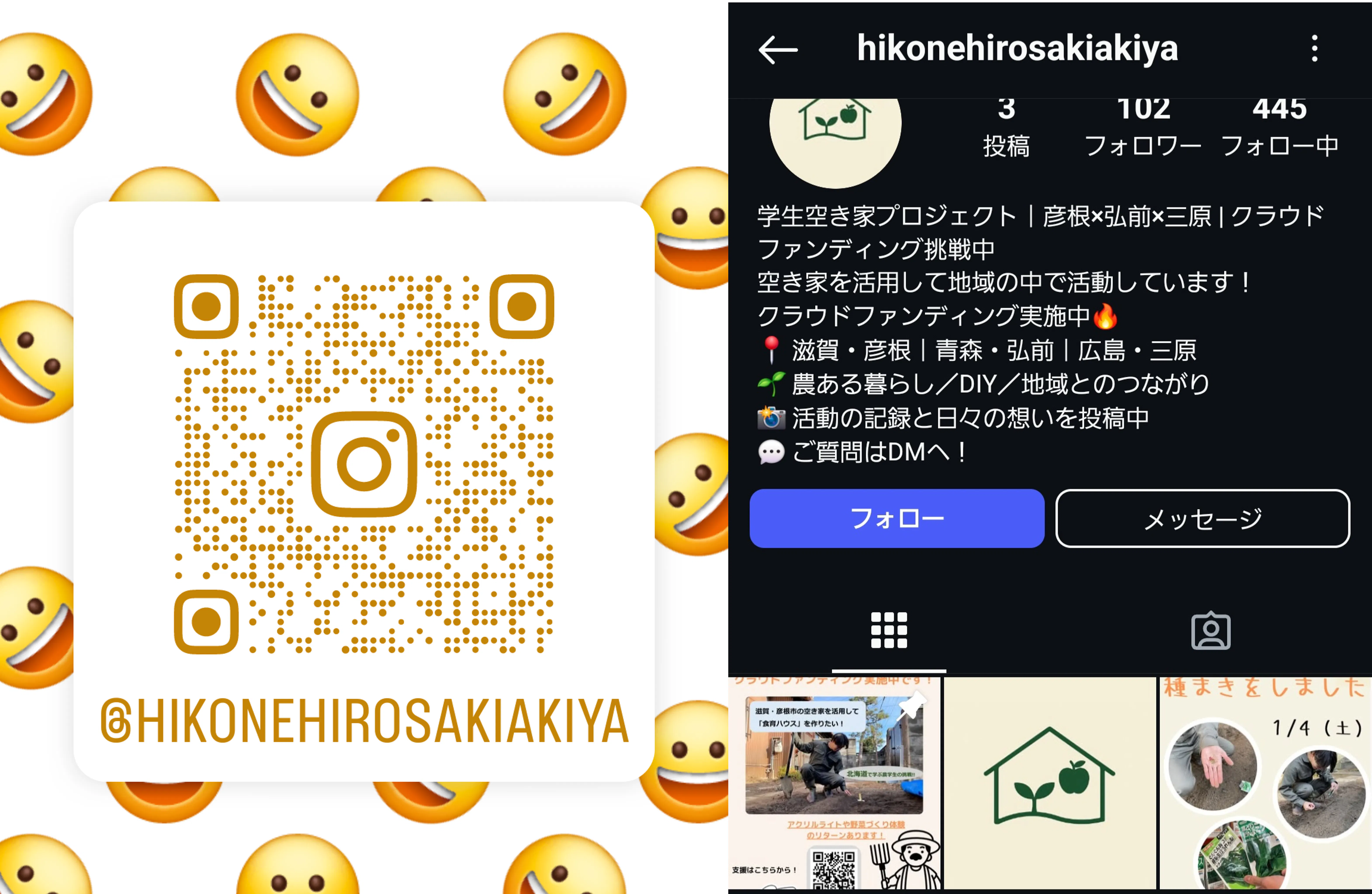 実際に空き家の改修作業と畑作業を行うため、彦根市に滞在して作業をしています。