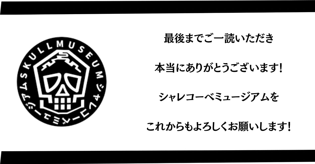 最後にはなりますが、今後ともシャレコーベミュージアムの応援を何卒よろしくお願いいたします。
