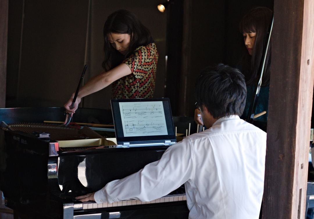 [MEGIHOUSE shin-project] 1台のピアノを三人で演奏している様子
