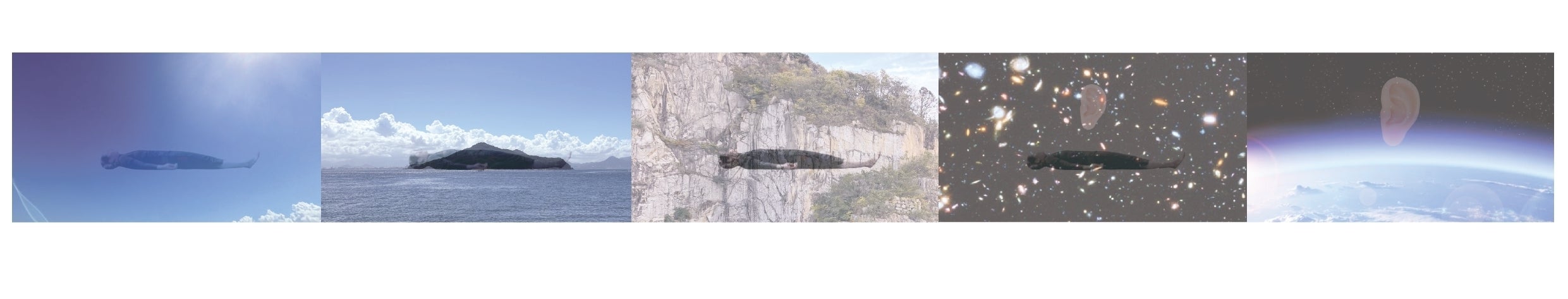 ②島の⾳Ⅰ:MEGIHOUSE の空間を⾏き来する⼥⽊島の環境⾳。(ex.汽笛、トンビの鳴き声、⾍の⾳、⾵...)