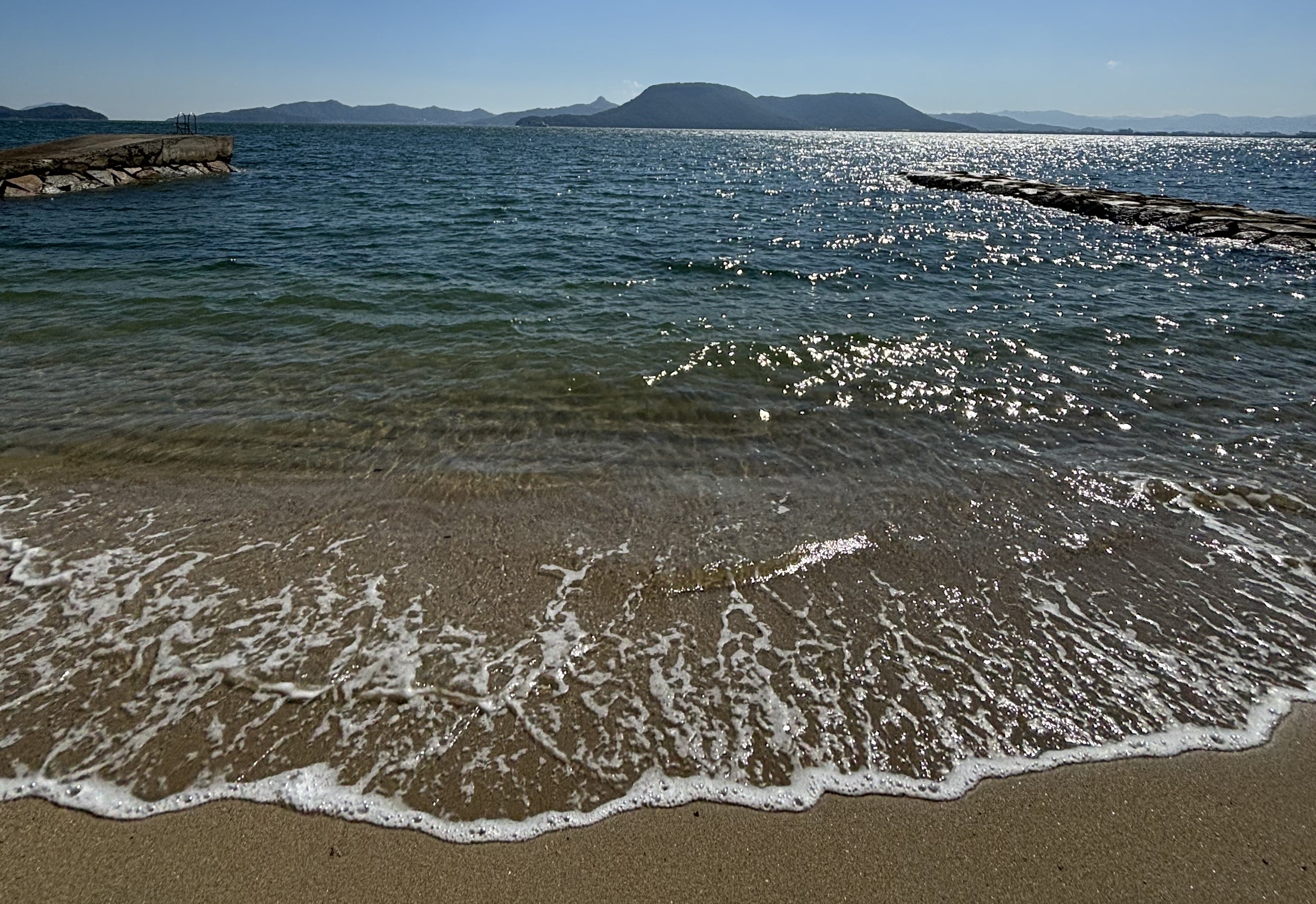 女木島のビーチ、 音を撮りながら、素晴らしい景色に出会える