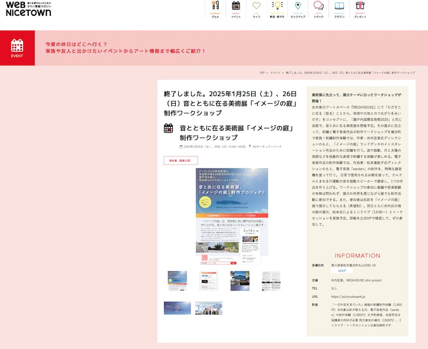 情報サイトにて「イメージの庭」展、ワークショップについてご紹介していただいた記事をご紹介します。