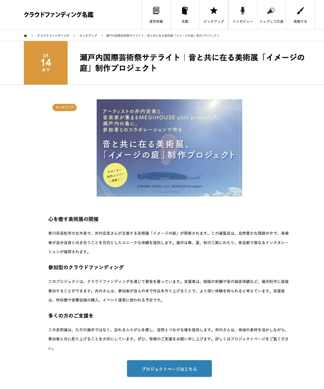 クラウドファンディング名鑑に掲載して頂いています。