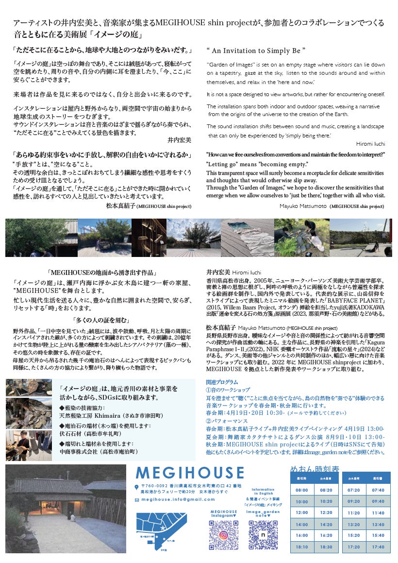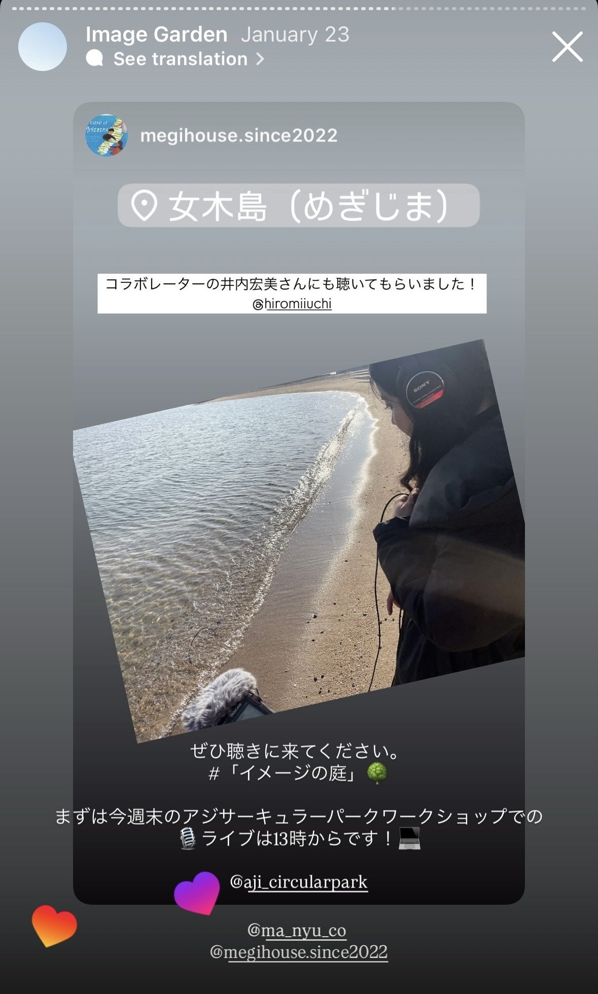 ・ワークショップや女木島で録音した音をもとに、「イメージの庭 」サウンドインスタレーション、「earden」の再編成を行います。