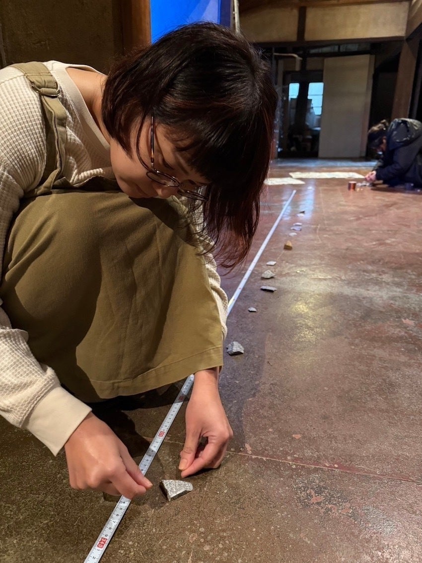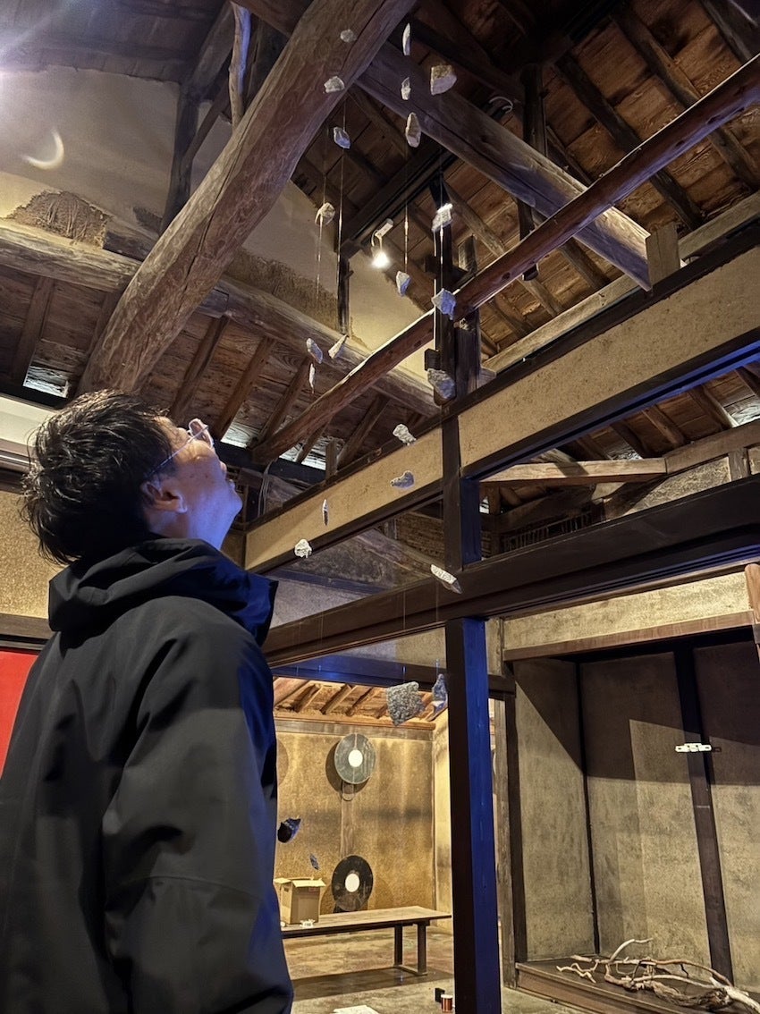 屋内は、庵治石で表現するビッグバンなどさまざまな素材を用いたインスタレーション。3月中、希望者と一緒に制作していて、参加者を募集中(要申し込み)。