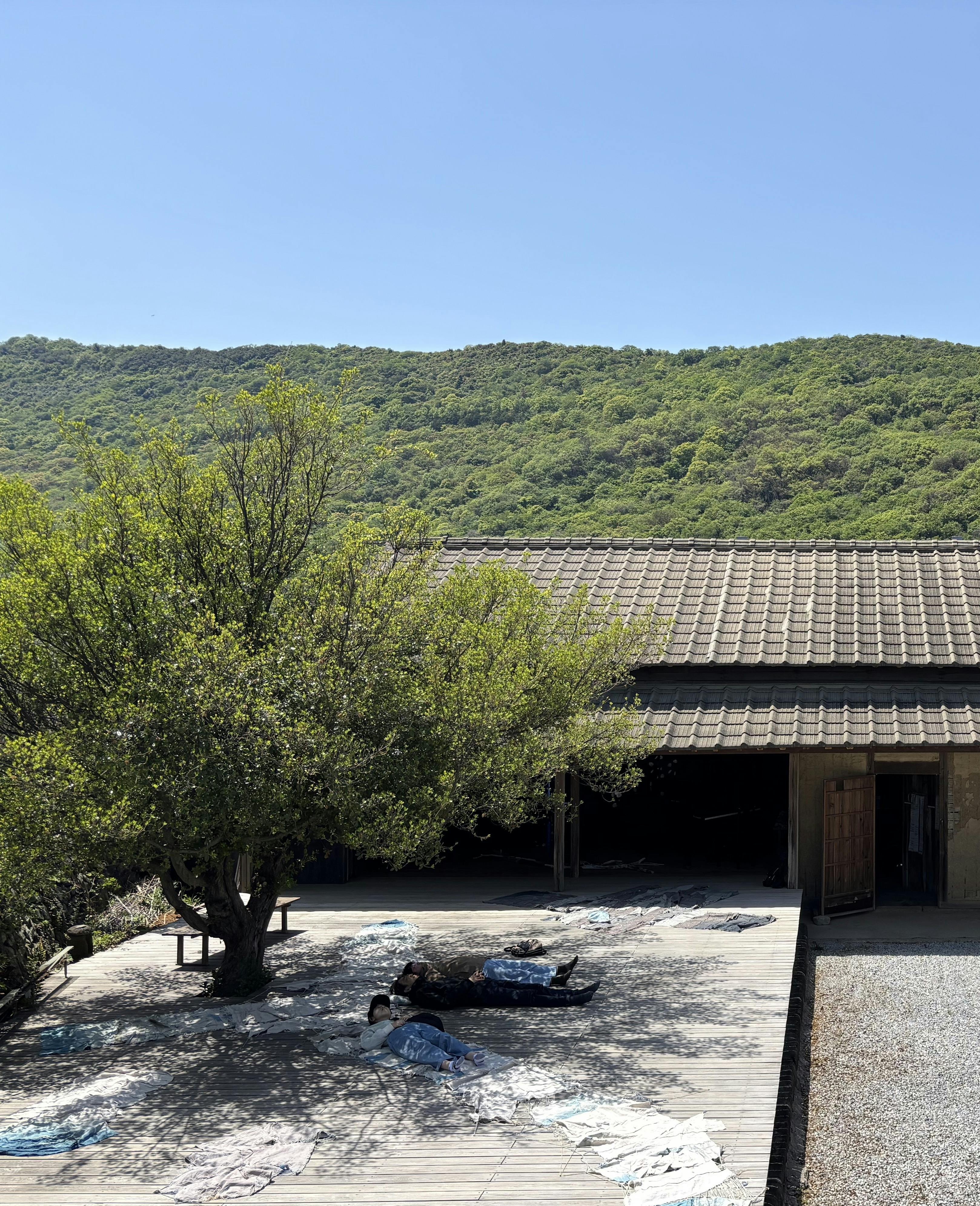 「イメージの庭」展は、女木の山並みを含む景色と作品と観客の方々をワンネスの中に捉えることで完成するので、高所から、お客様のカメラで寝転がっている姿を撮影するサービスも新たに始め、好評をいただいています。