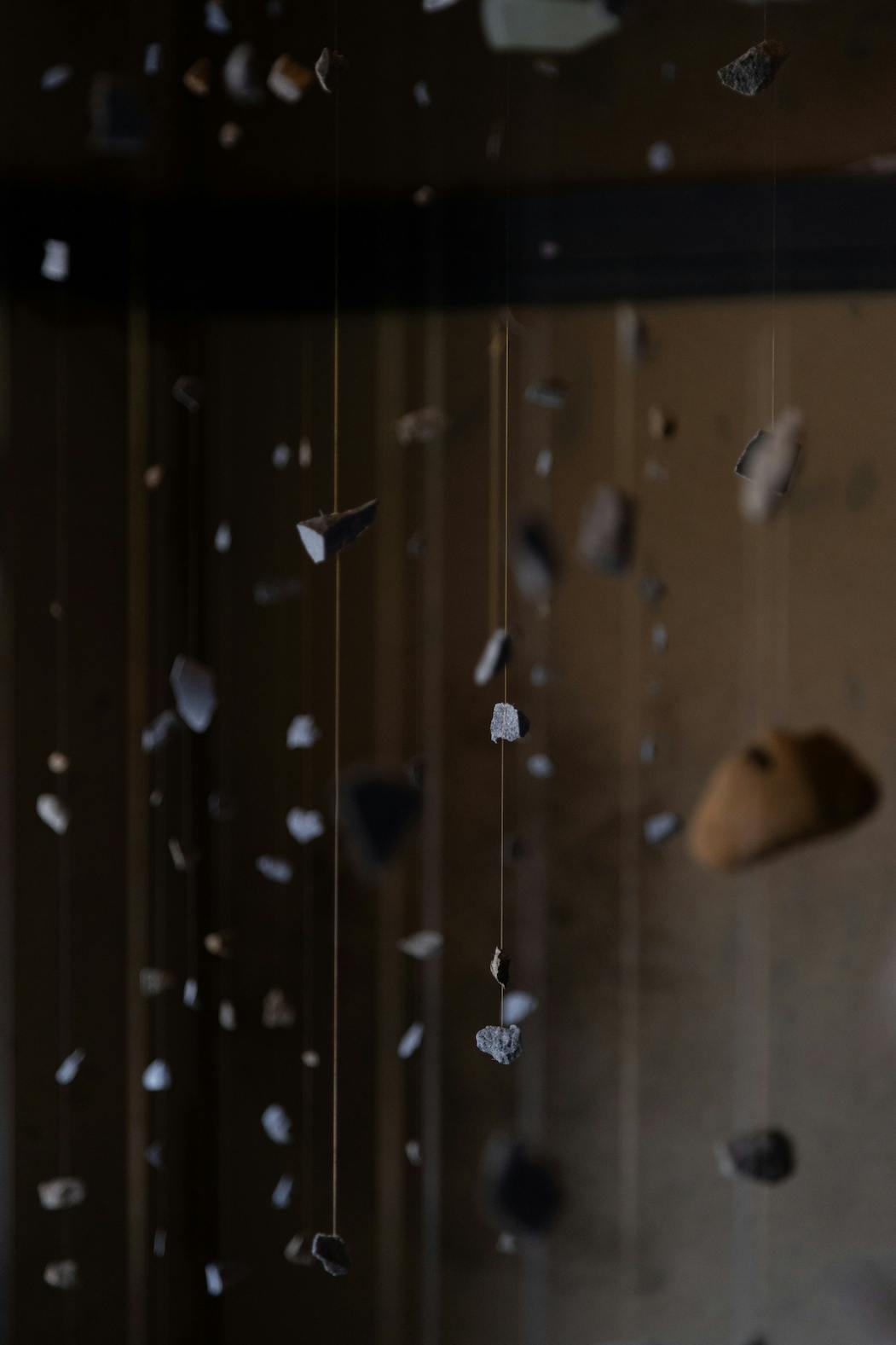春会期中にご来場の方々に女木島で採集した貝、または庵治石を1つづつ吊るしてもらったので、インスタレーションのボリュームが増えました。