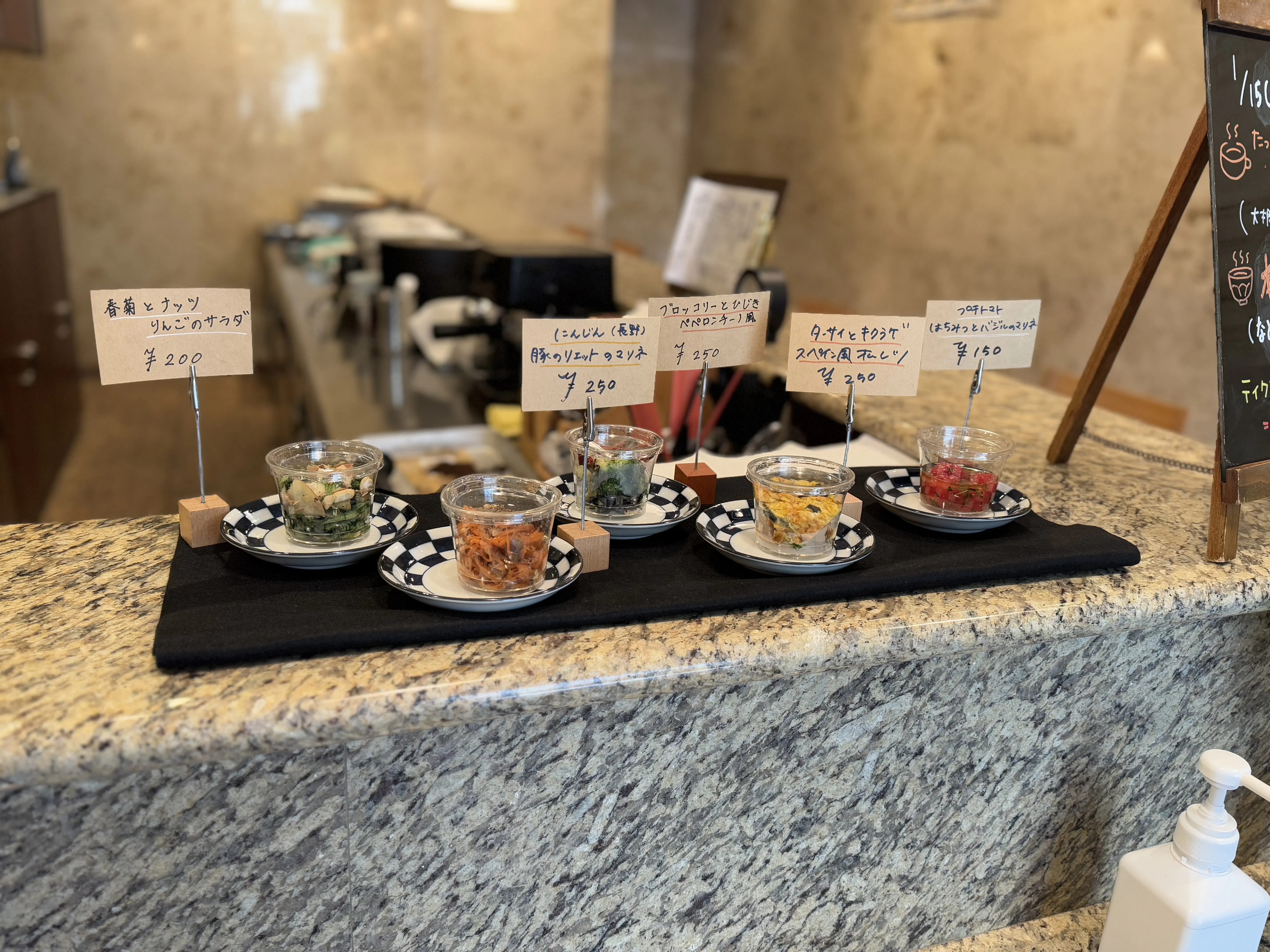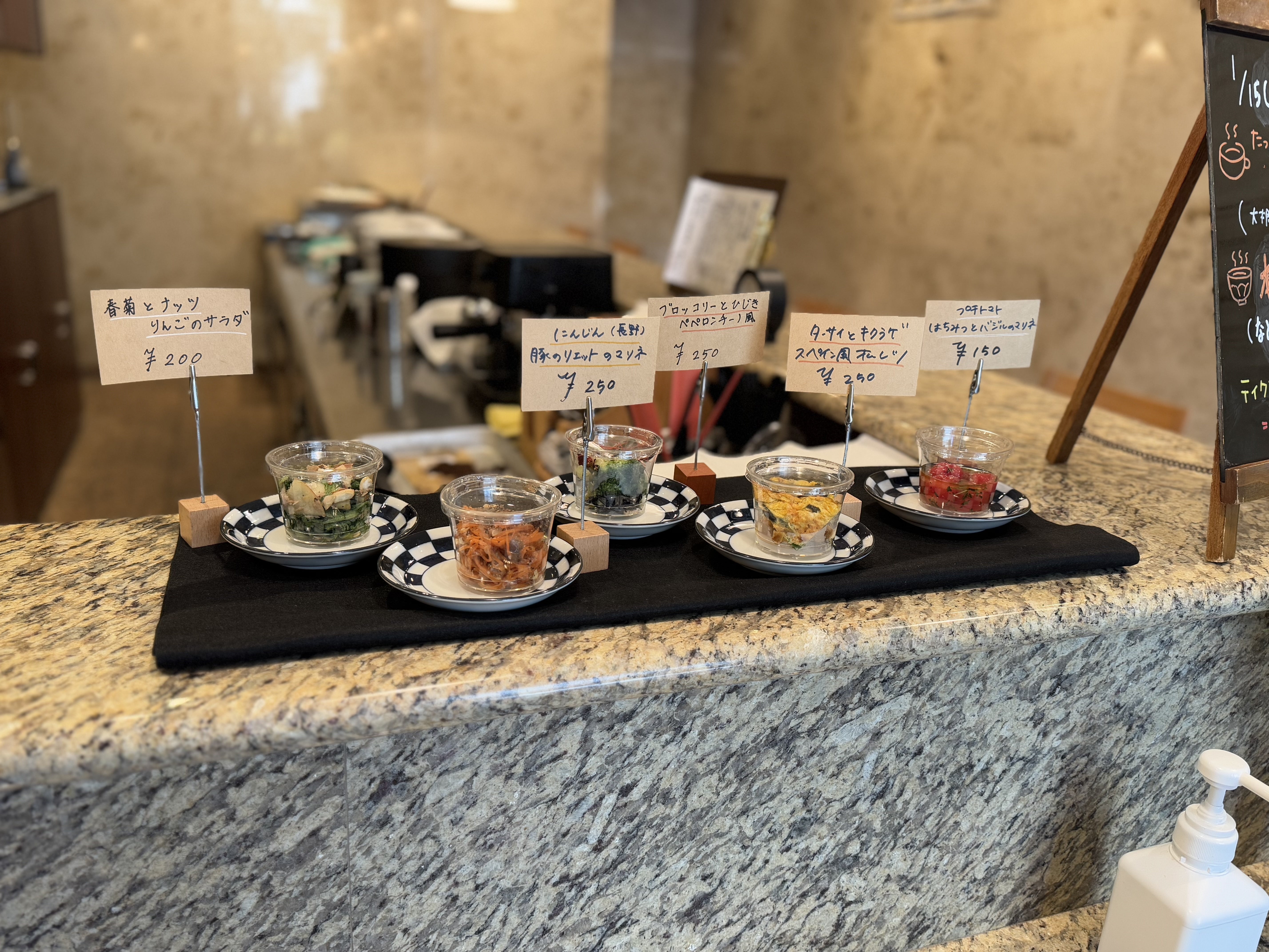 料金表:ランチは¥1000~。デリは\250~。ワインは¥500~提供しています。