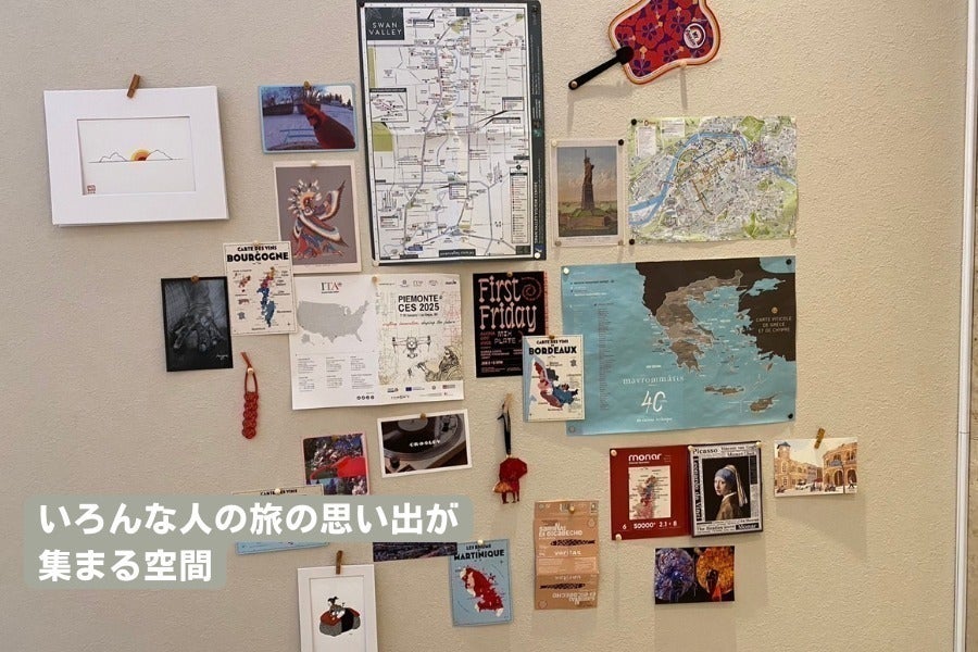 また、旅行先で出会ったおすすめのお酒や料理を書いていただくと、ドリンク一杯を無料で提供します。