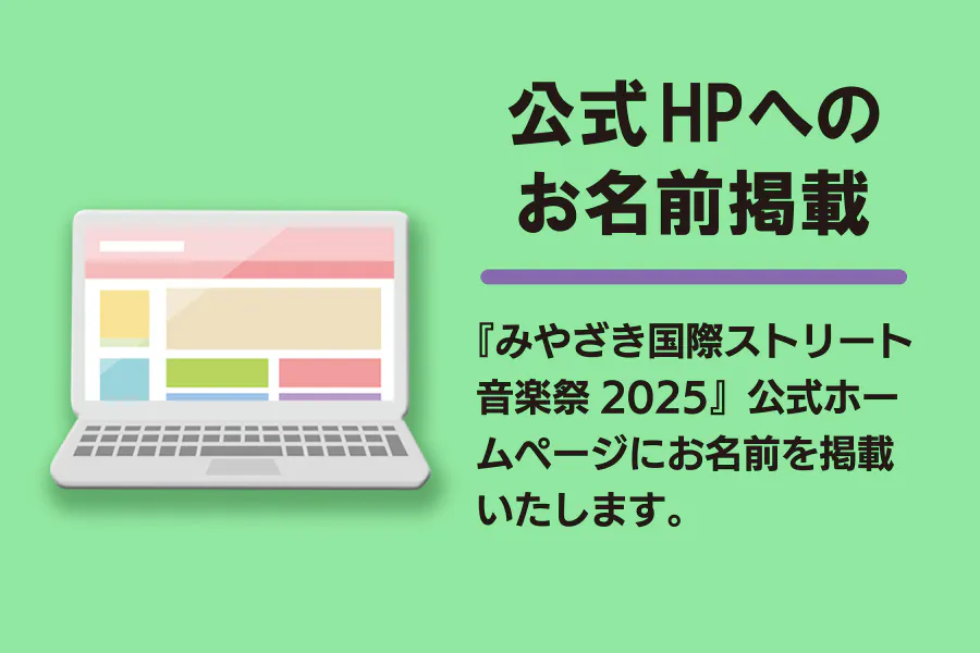 「みやざき国際ストリート音楽祭」は、皆さまからのご協賛・ご支援で運営されています。