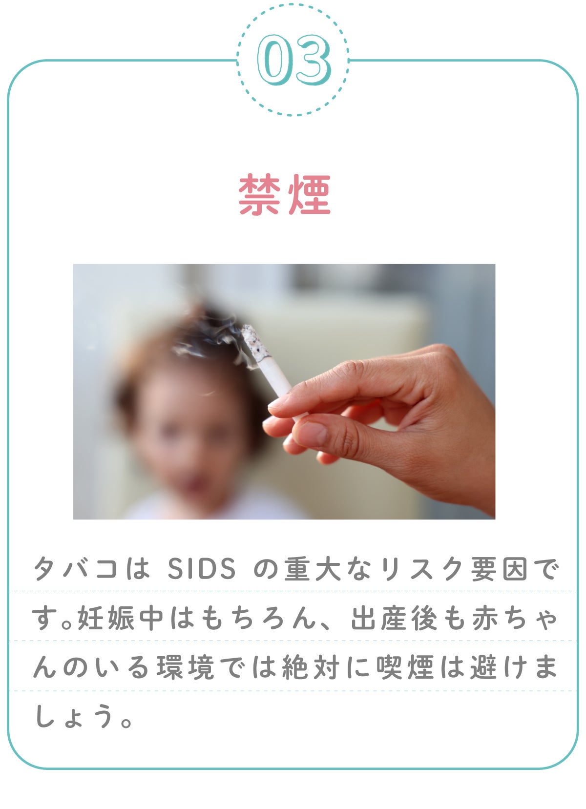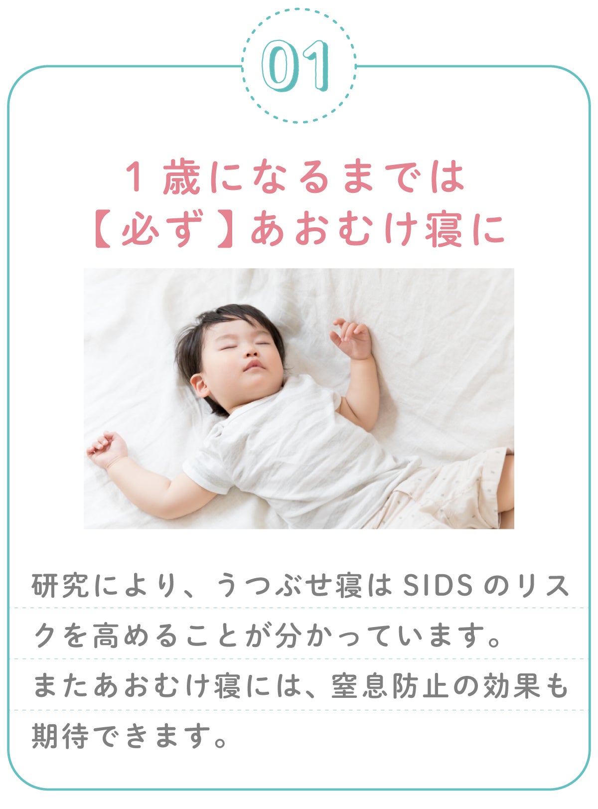 特に気をつけたいのが、SIDS(乳幼児突然死症候群)です。